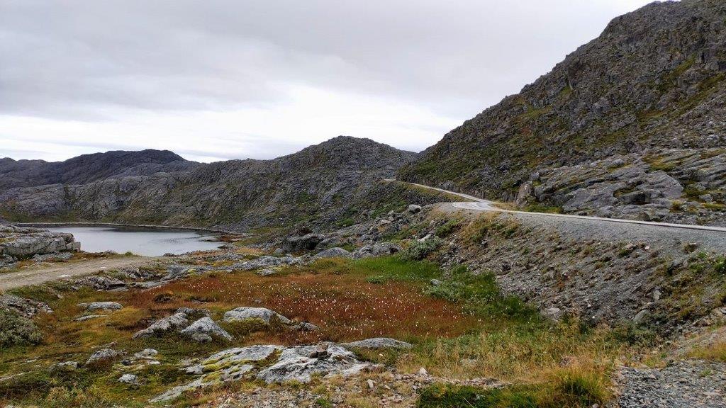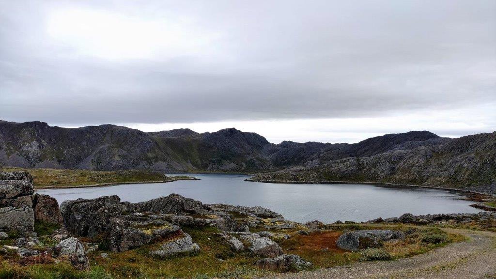 10 Uhr – überpünktlich öffnete die Mietwagenstation und nach fünf Minuten öffneten wir die Türen eines schwarzen Hyundai IX35. Auch für uns Vier sehr geräumig. Und schon waren wir unterwegs, verließen Honningsvåg und schlugen den Weg Richtung Nordkap ein. Über die Insel Magerøya. Die Übersetzung ins Deutsche – magere, karge Insel – bewahrheitete sich zum großen Teil. Zunächst fuhren wir an Felsen und Felsbrocken vorbei. Dann wurde aus graugrün. Keine Bäume, wenig Sträucher, später überhaupt keine Sträucher mehr. Nordmeerstürme hinterließen ihre Daumenabdrücke. Aber den Gräsern und Moosen konnten sie nichts anhaben. Sie setzten sich durch. Viel Wasser – Seen. Gletscherseen. Teilweise romantisch zwischen Bergen gelegen. Natürlich mit den in Norwegen unvermeidlichen Hütten. Na ja, es waren eher bestens ausgestattete Ferienhäuser.
