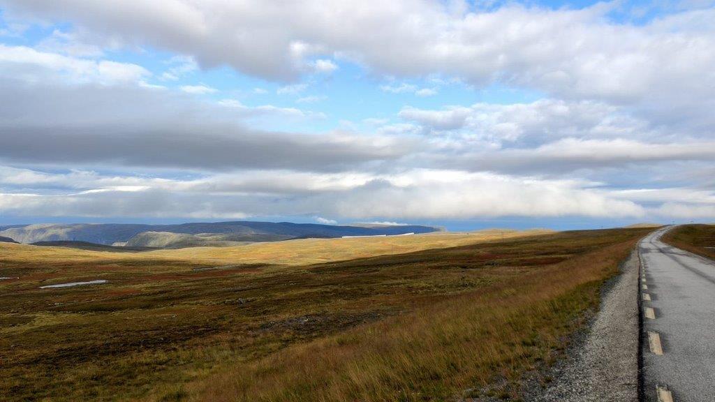 Bis wir wieder die E69 erreichten und unter meist blauem Himmel unser Ziel Nordkap anvisierten. Ab und zu gab es Parkplätze am Rande der Straße. Einer hatte es uns angetan: Aurora Lights View Parking.