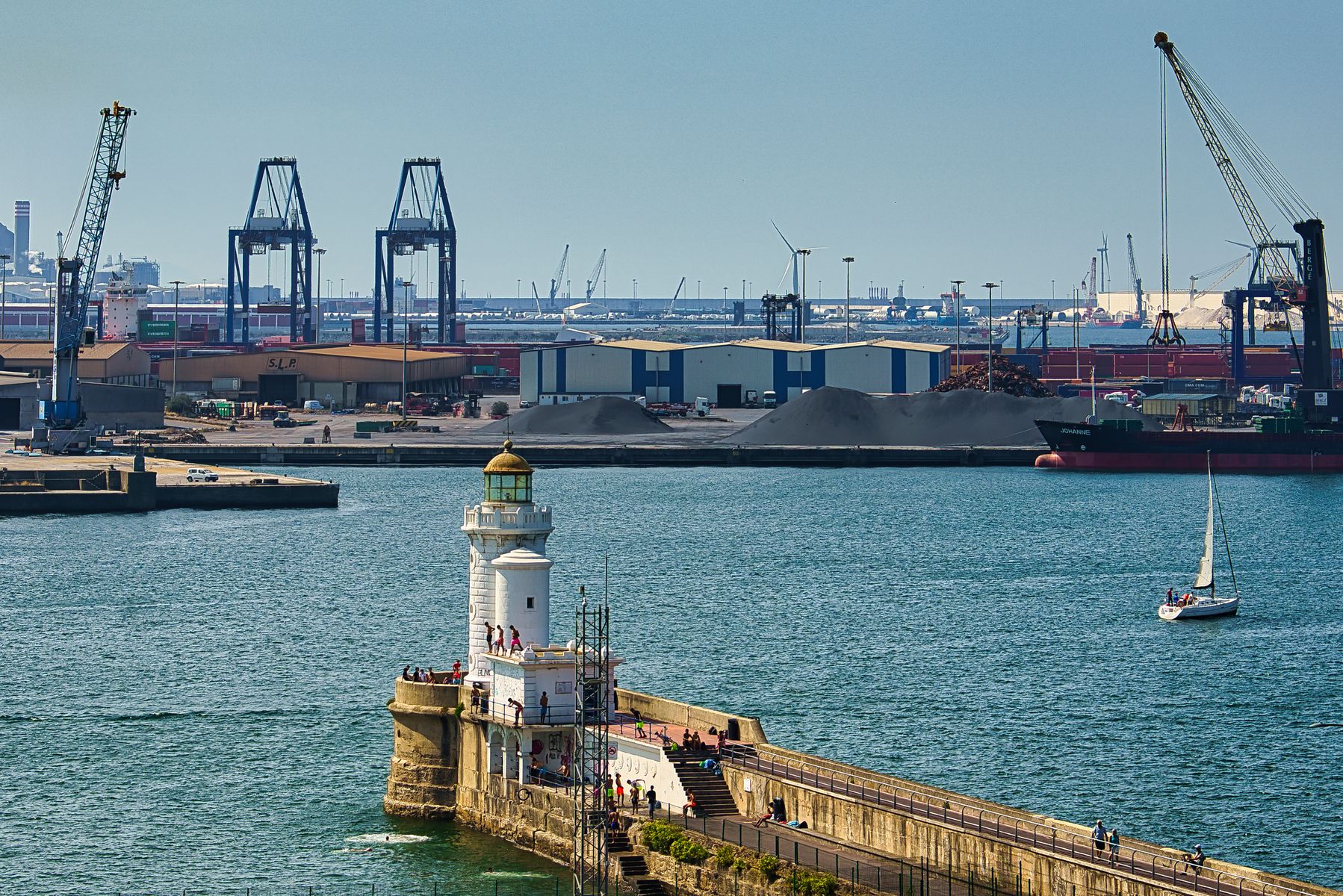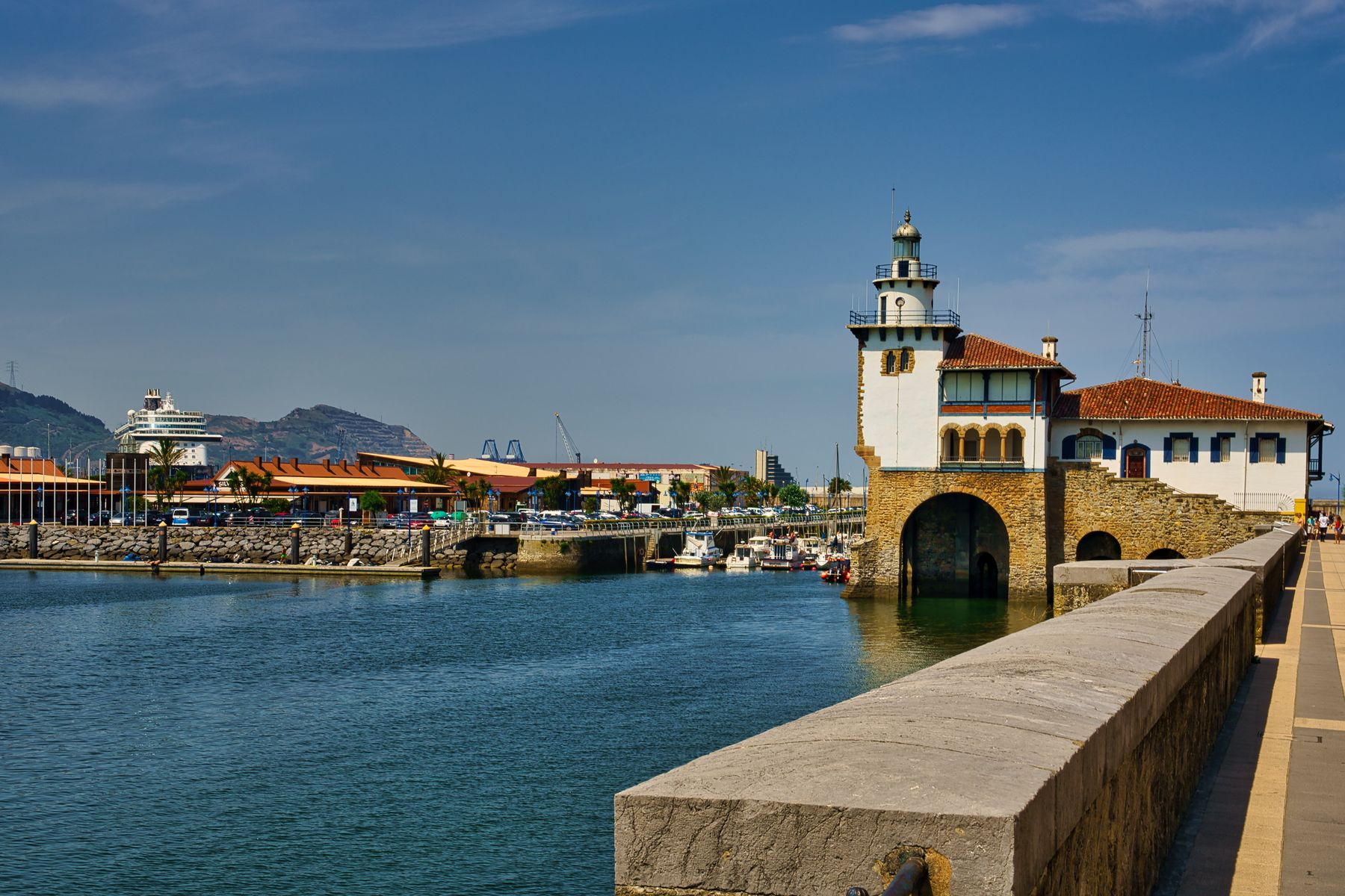 Nun nur noch am „Faro de Arriluce“ vorbei und dann die in voller Sonne liegende unendlich lange Hafenmole bewältigen. Hier hätten wir sogar einen Pendelbus nehmen können, aber wir schleppen uns auch noch die letzte Viertelstunde zu Fuß zum Schiff und freuen uns auf ein schattiges Plätzchen mit einem eisgekühlten Getränk.