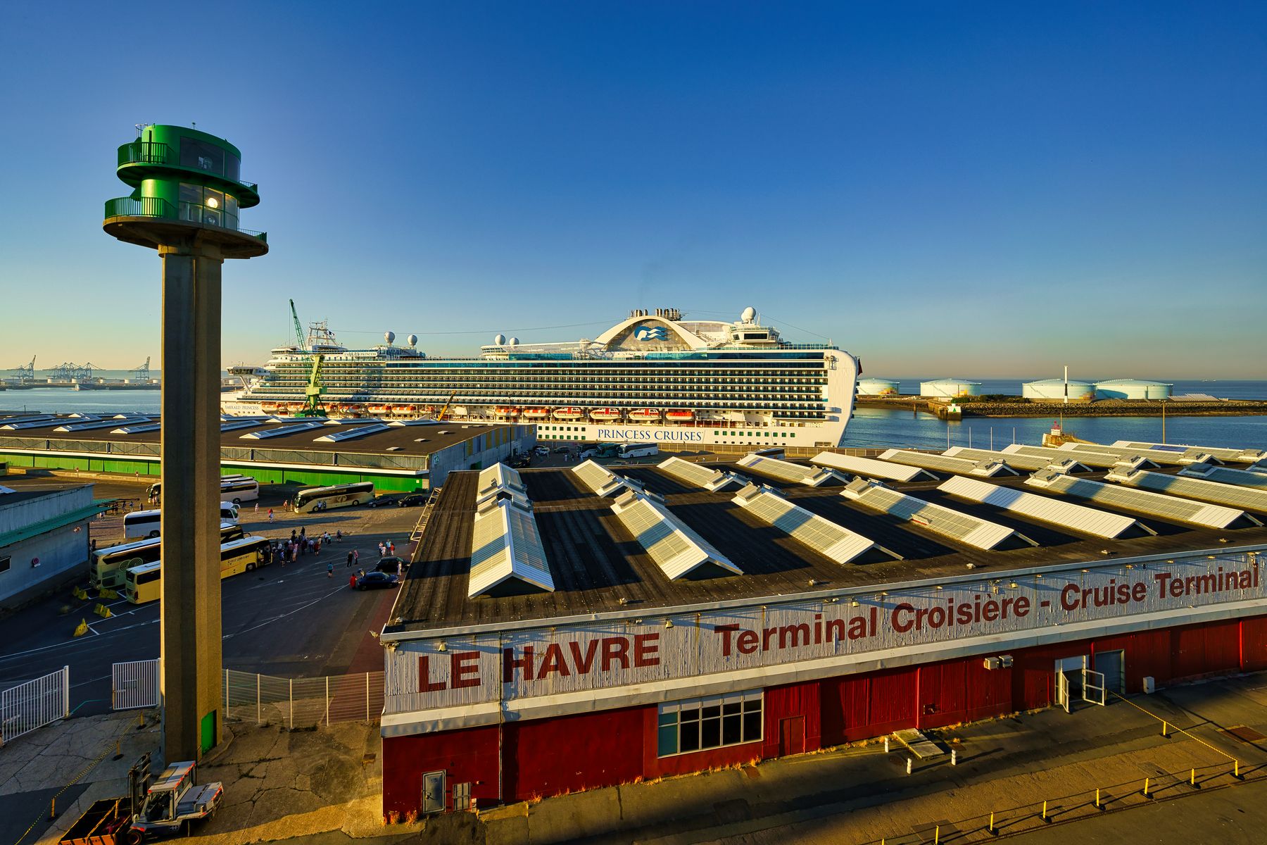 12.08.2022. Freitag Morgen. Es ist acht Uhr und wieder knallt die Sonne vom Himmel. Der Kreuzfahrtterminal von Le Havre ist wie auch die ganze Stadt wenig einladend. Mit uns hat auch die „Emerald Princess“ festgemacht.