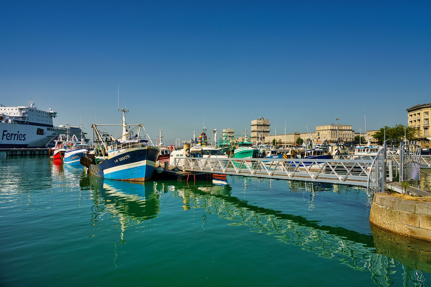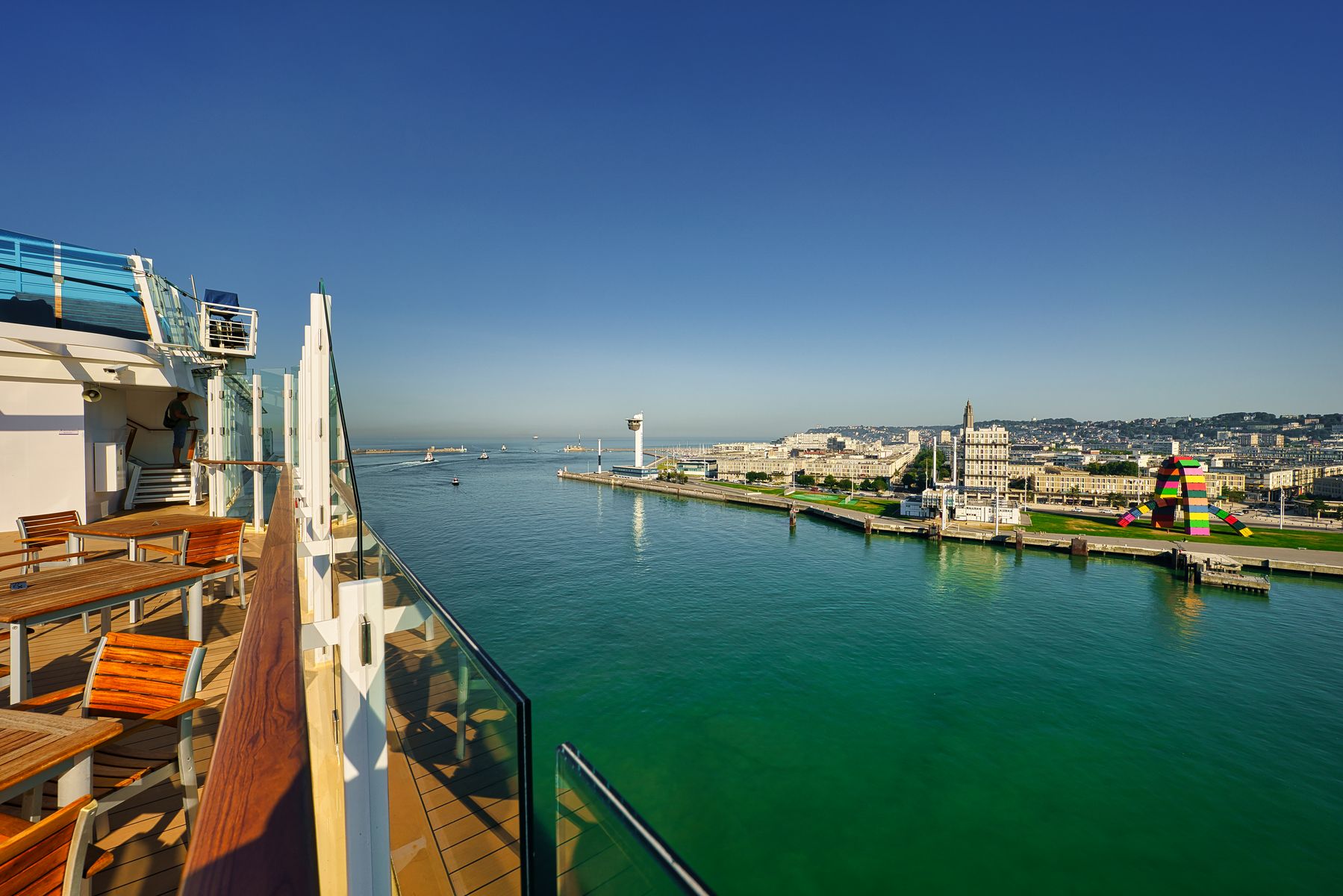Bevor es losgeht, drehe ich mit der Kamera eine Runde an Deck. Le Havre liegt am rechten Ufer der Seinemündung und der zweitgrößte Hafen Frankreichs und ist die größte Stadt der Normandie. Die knapp 170.000 Einwohner nennt man im Französischen Havrais und Havraises. Das wäre auch eine Frage für Günther Jauch. Nach schweren Zerstörungen im Zweiten Weltkrieg wurde die Stadt von 1945 bis 1954 mit einer charakteristischen Betonarchitektur mit langen Straßenachsen und breiten Boulevards wieder aufgebaut und hat es damit 2005 in die Liste des UNESCO-Welterbes geschafft.