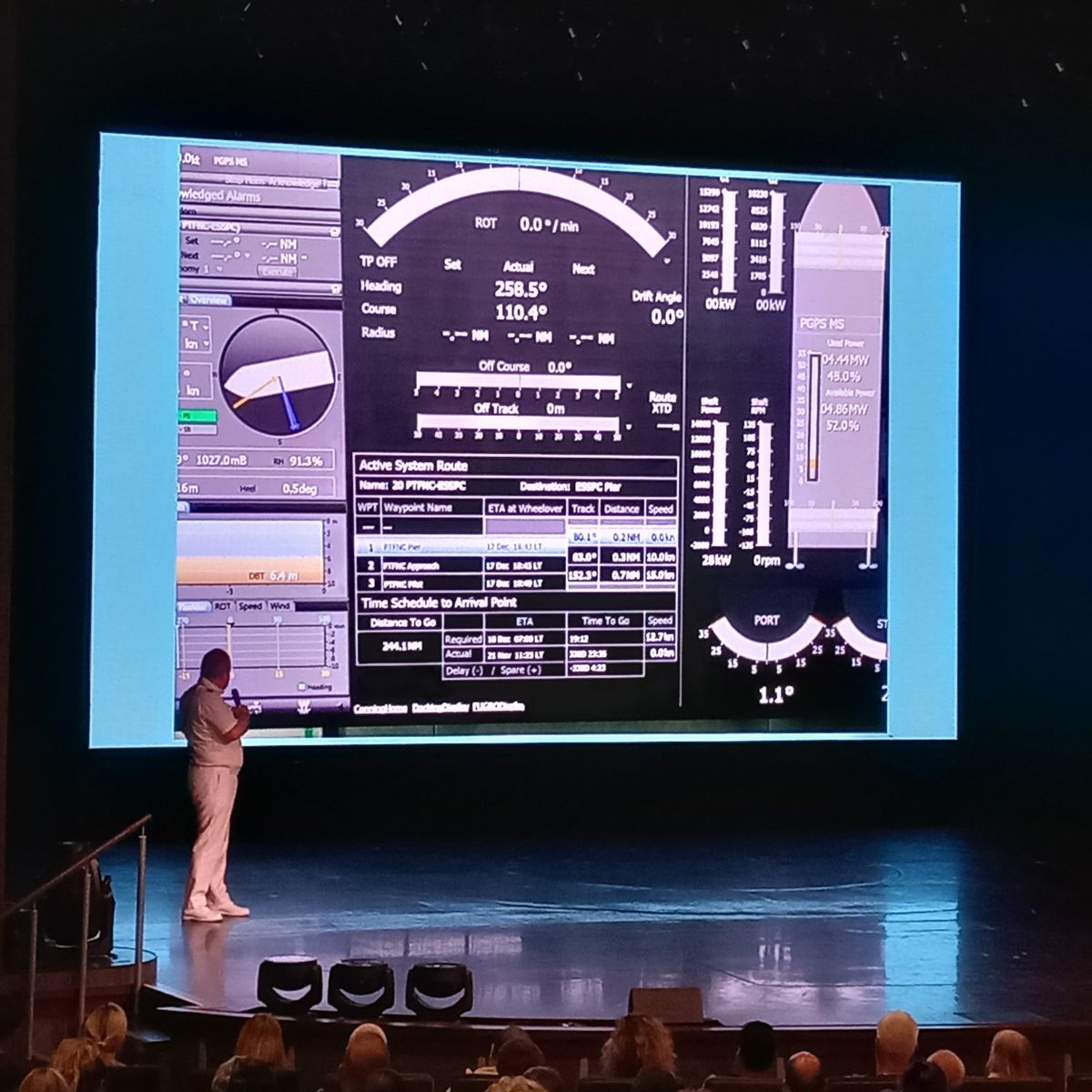 Die Technische Nautikstunde vom Kapitän, die wir schon von unserer Asienreise her kannten war wieder sehr humorvoll. Der Kapitän kann die Antworten schon sehr witzig rüberbringen.