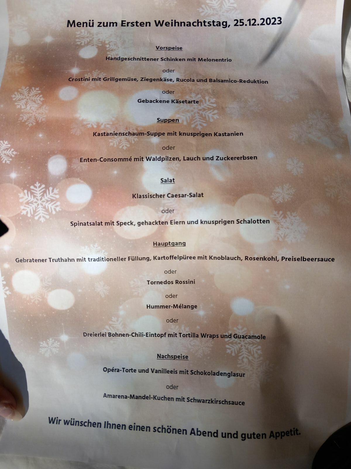 Abends im Restaurant dann noch einmal ein Gala Menü. wir finden es Schade, dass sich heute zu solchen Anlässen nur mehr wenige Herren im Anzug oder wenigsten im Sakko zeigen. Wir sind noch so aufgewachsen, dass man sich entsprechend kleidet. Aber es sind wohl die Zeichen der Zeit, dass das nicht mehr so IN ist.