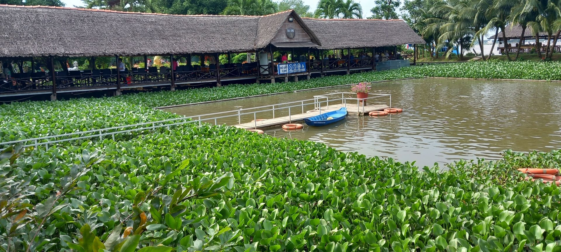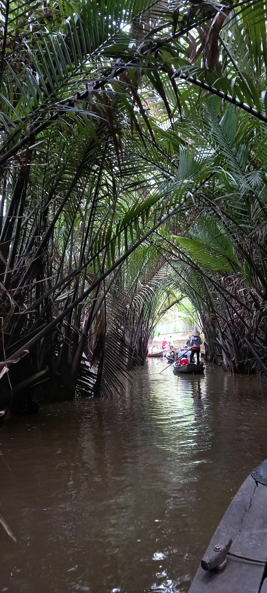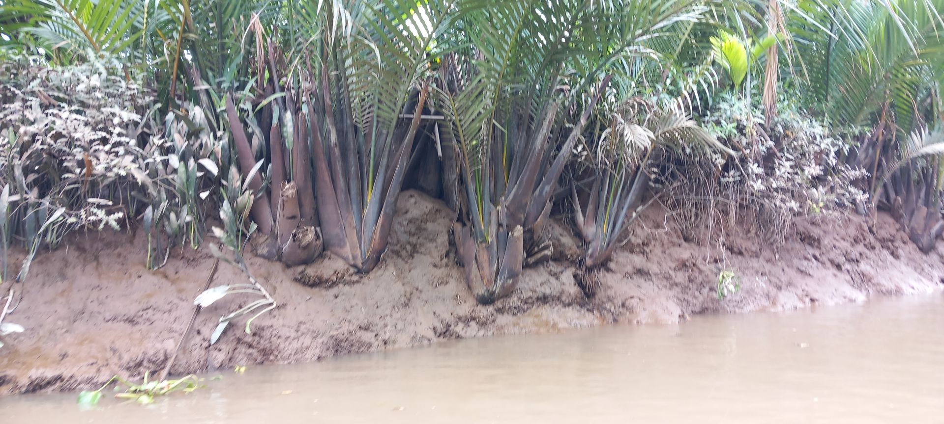 Nach einer kurzen Fahrt durften wir in eine Art Gondel umsteigen um durch einen wunderschönen Palmengarten gefahren zu werden. Die Wasserpalmen, der Wurzeln weit nach unten reichen, wurden gepflanzt um das Ufer vor der Erosion zu schützen.