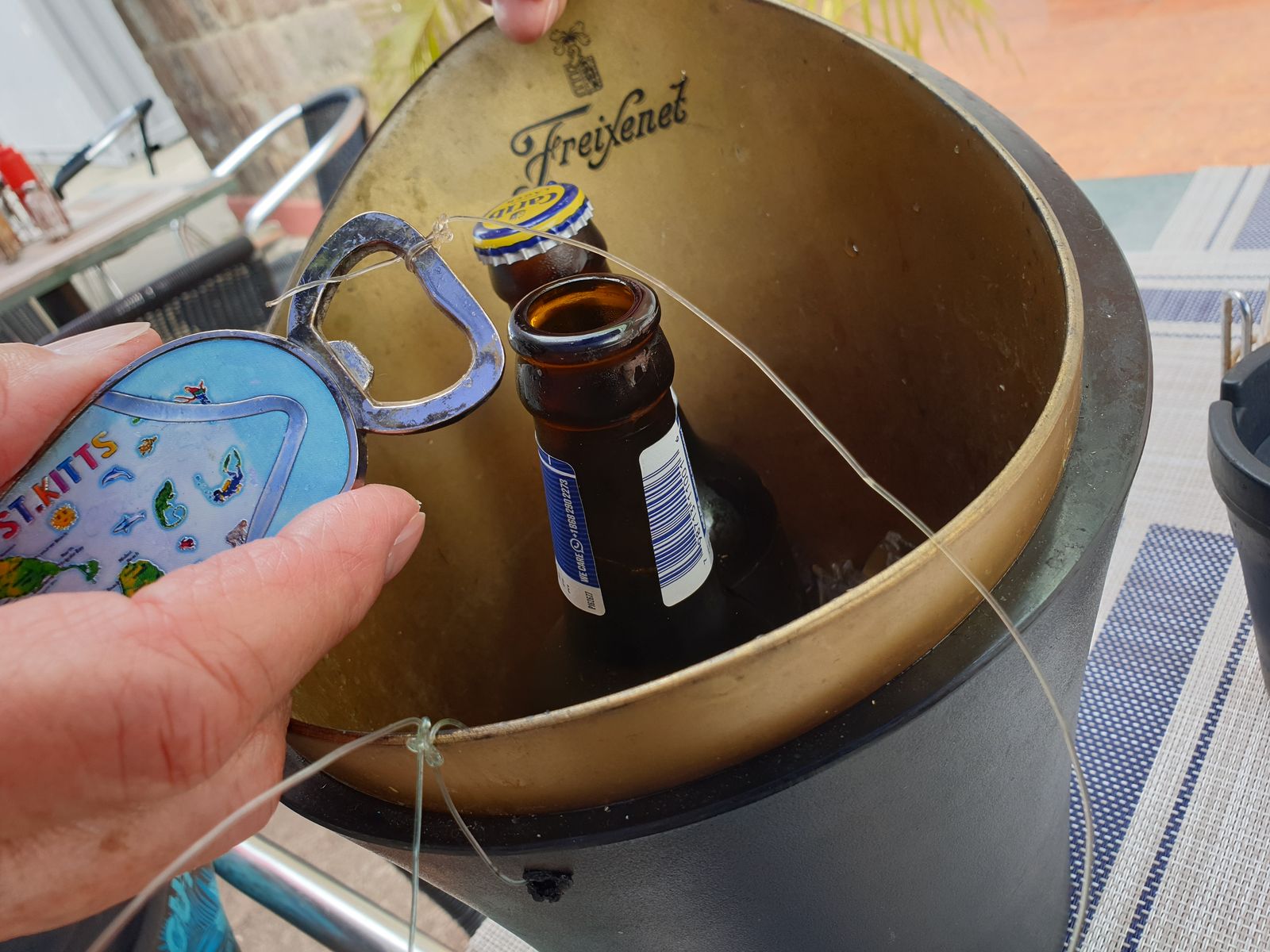 Und nun wird es Zeit für eine Erfrischung. Wir sind ja schließlich in der Karibik und wenn wir schon nicht baden, kann unsere Kehle einen kühlen Schluck vertragen. Beim Postamt ist ein kleines Lokal, Stühle stehen im Schatten und wir bestellen uns ein Bier. Die Flaschen sind winzig und deshalb nehmen wir einfach 3 mal Carib. Hinter uns kommen Leute und holen ihre Postsachen aus den unzähligen Schließfächern. Ansonsten geht es gemächlich zu. Na ja, fast, aus dem Lautsprecher dröhnt Musik, aber wenigstens eine, die wir mögen.
