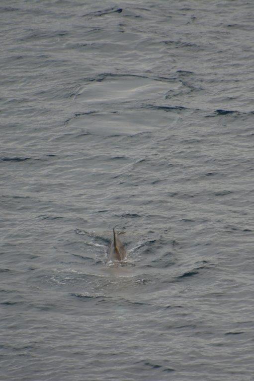 … übernahm dieser Wal die Aufgabe. Leider nur der eine Wal. Aber immerhin. Ganz, ganz anders als ein verschlafenes „Guten Morgen…“ So richtig toll war das Wetter nicht. Lausig kalt. Die Sonne hatte sich vor uns versteckt. Doch halt – vor uns, am Horizont, sah es ein wenig besser aus. Die Sonne versuchte, sich durch die Wolken zu kämpfen; Flecken blauen Himmels waren auch vorhanden.
