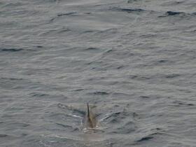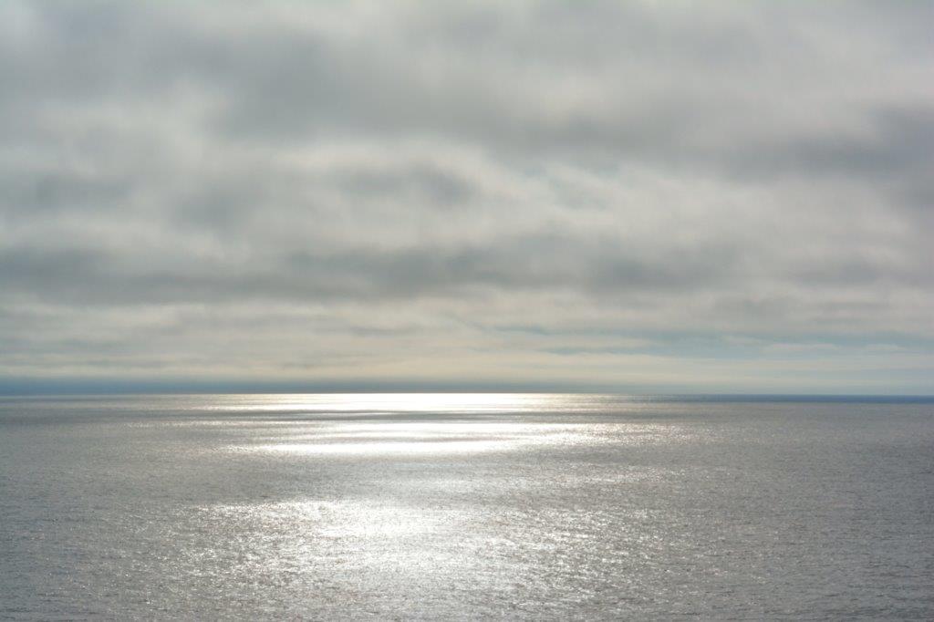 … übernahm dieser Wal die Aufgabe. Leider nur der eine Wal. Aber immerhin. Ganz, ganz anders als ein verschlafenes „Guten Morgen…“ So richtig toll war das Wetter nicht. Lausig kalt. Die Sonne hatte sich vor uns versteckt. Doch halt – vor uns, am Horizont, sah es ein wenig besser aus. Die Sonne versuchte, sich durch die Wolken zu kämpfen; Flecken blauen Himmels waren auch vorhanden.