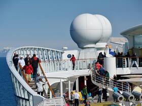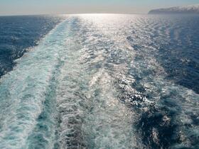 So, nun zurück an Bord. Ca. 2 ½ Stunden dauerte die Passage. Was machten wir in dieser Zeit? Na klar, wir stärkten uns. Aber nur kurz. Anschließend suchten wir alle einen Bugplatz und fanden ihn. Erneut ein Wunder, dass sich der Beerenberg noch immer frei vom in dieser Gegend oftmals auftretenden Nebel in seiner ganzen Schönheit präsentierte! Wir sogen diese Schönheit regelrecht mit unseren Augen auf. Dann kündigte sich mit einem Blick auf die Uhr die Kaffeezeit an. Wir wurden Besetzer. Nein, schon wieder nicht von Liegen. Von einem Tisch im Außenbereich des Weite Welt-Restaurants. Natürlich auf Backbordseite. Kaffee und Kuchen schmeckten in dieser Stunde doppelt so gut.