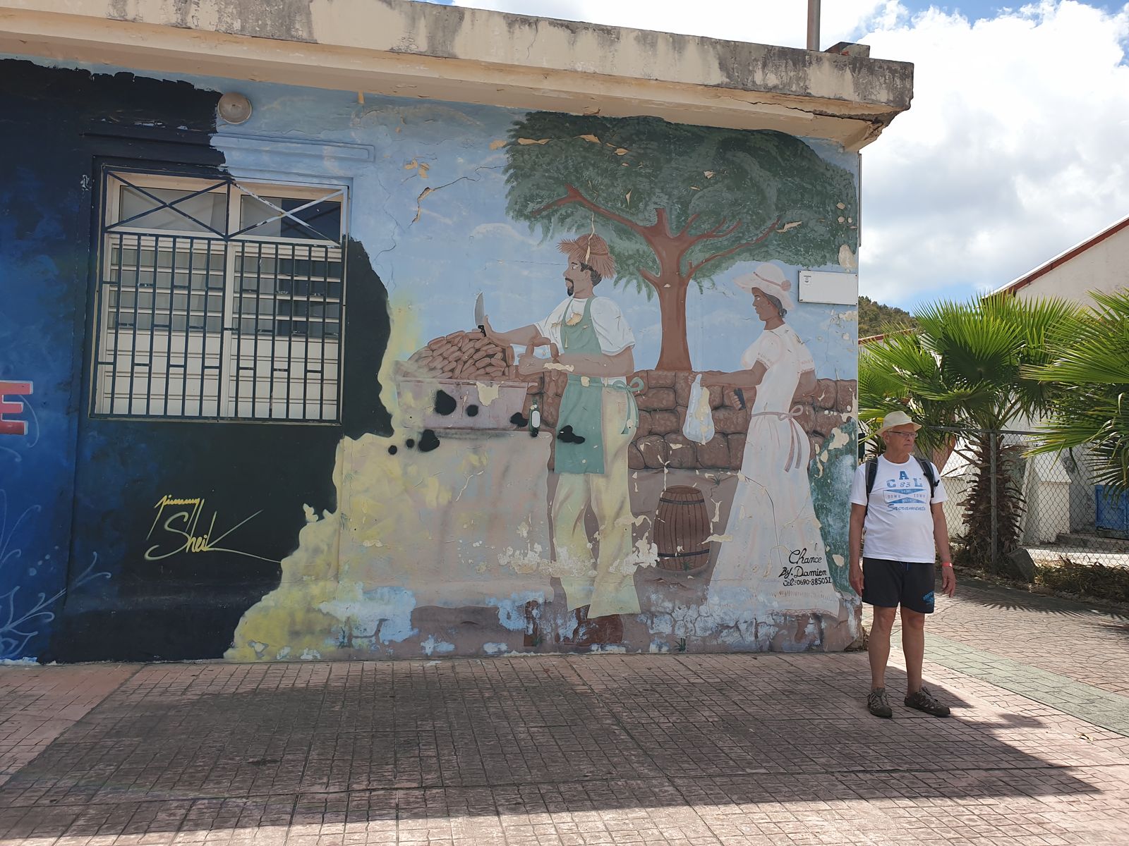 Nun aber wieder zurück um heutigen Tag und spontan fällt mir ein, ich hätte weder in dieser Stadt noch in Marigot ein sprachliches Problem. Beide Orte sind Hauptstädte, denn die Insel ist unterteilt. Es gibt somit 2 Staaten, die sich die 93 Quadratkilometer geteilt haben. Im Norden ist der französische Teil und südlich der niederländische Teil. Nirgendwo auf der Welt haben diese beiden Staaten eine gemeinsame Grenze, außer hier. In Europa liegt zwischen ihnen Belgien. Ich spreche beide Sprachen und falls ich mich vertrödeln sollte, kann ich nach dem Weg fragen. Als ich diesen Gedanken meinem Mann verriet, schaute er mich mit hochgezogener Augenbraue an.“Ne meine Liebe, bitte keine Abstecher – denke nur an den Containerhafen, wo ich dachte, man hätte dich verschleppt bei dunkler Nacht. Und warum? Weil du unbedingt das Schiff bei Nacht besonders toll fotografieren wolltest!“ Ich blicke zu Boden und verspreche ihm, HEUTE bleibe ich bei der Gruppe.