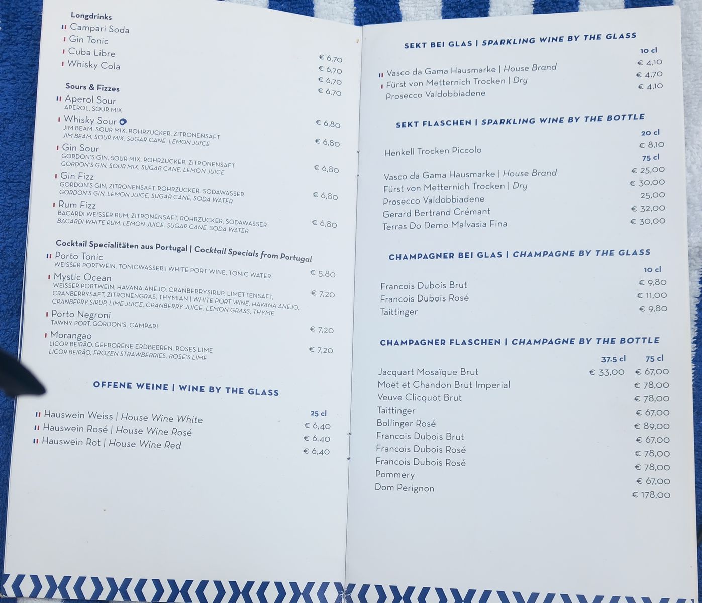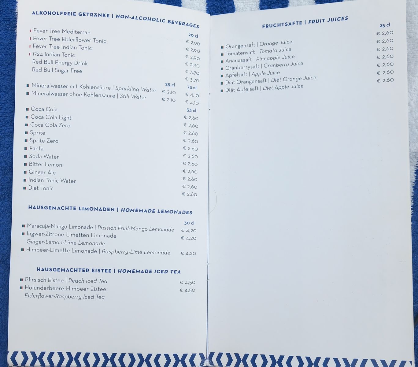 Wie sind die aktuellen Getränkepreise auf der VdG?