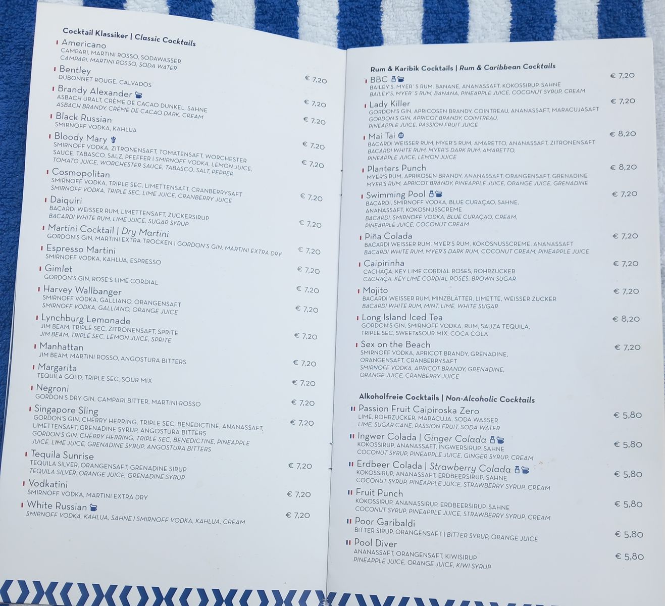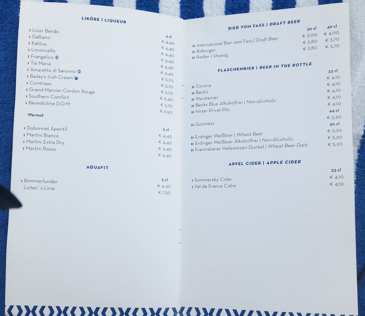 Wie sind die aktuellen Getränkepreise auf der VdG?