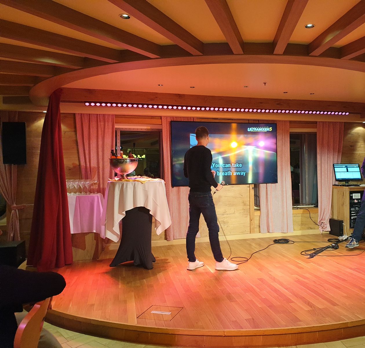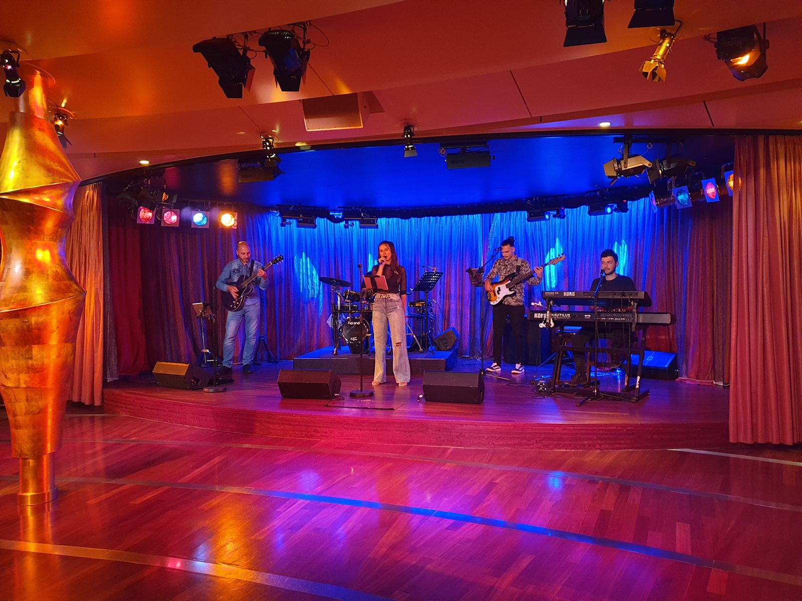 Das Theatrium leert sich nur leicht, denn heute Abend singt sie für uns: Terri Green. Was ich echt toll finde, sie ist so herrlich natürlich und weil das Schiff leicht schaukelt, zieht sie erst mal ihre Schuhe aus und dann bekomme ich Gänsehaut, als sie anfängt zu singen.