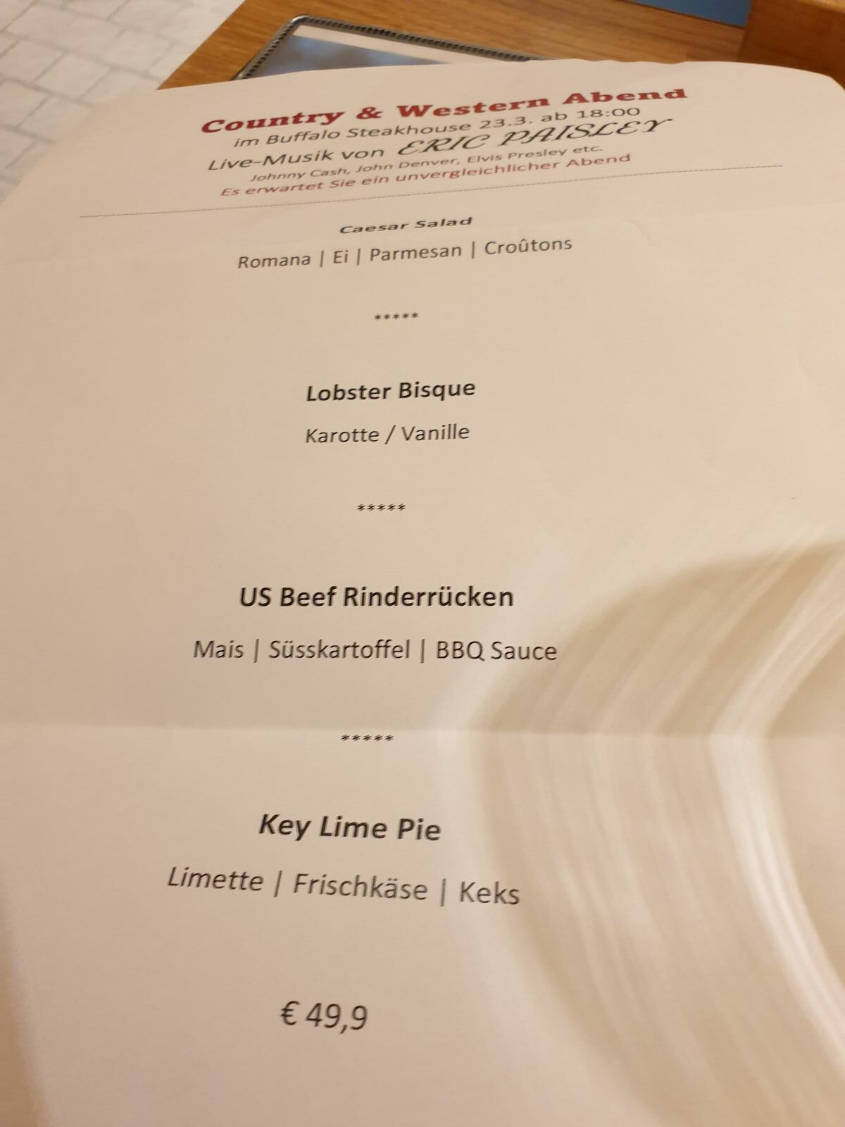 Mir kommt ein Fleyer zwischen die Finger für eine Veranstaltung am 23.3. im Buffalo Steakhouse und ich flitze schnell hin und melde uns beide an. Das wird sicher ein toller Abend werden.