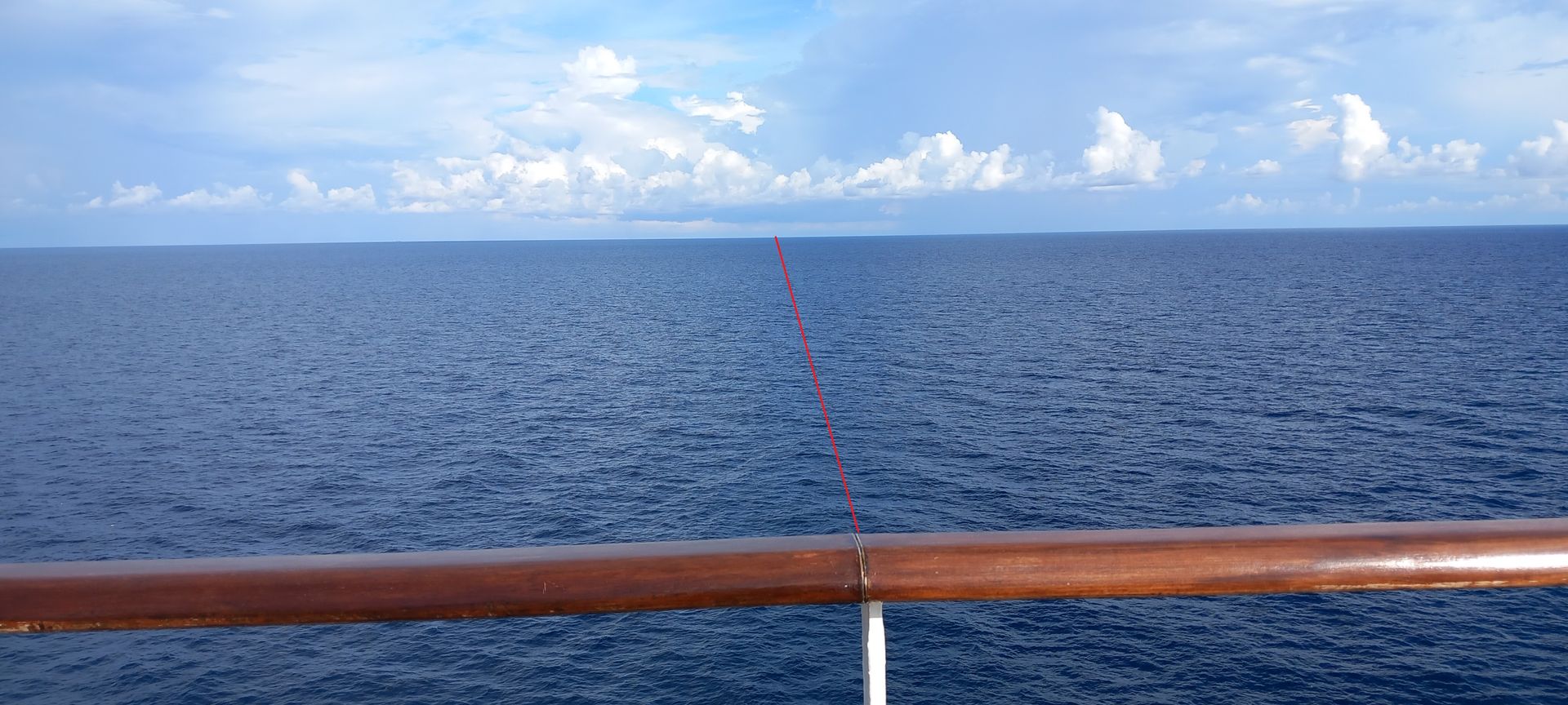 Über den Lautsprecher wurden wir dann angehalten nach der roten Linie im Meer zu sehen, wenn wir den Äquator überqueren und siehe da, wir haben die rote Linie wirklich gesehen ![]()