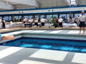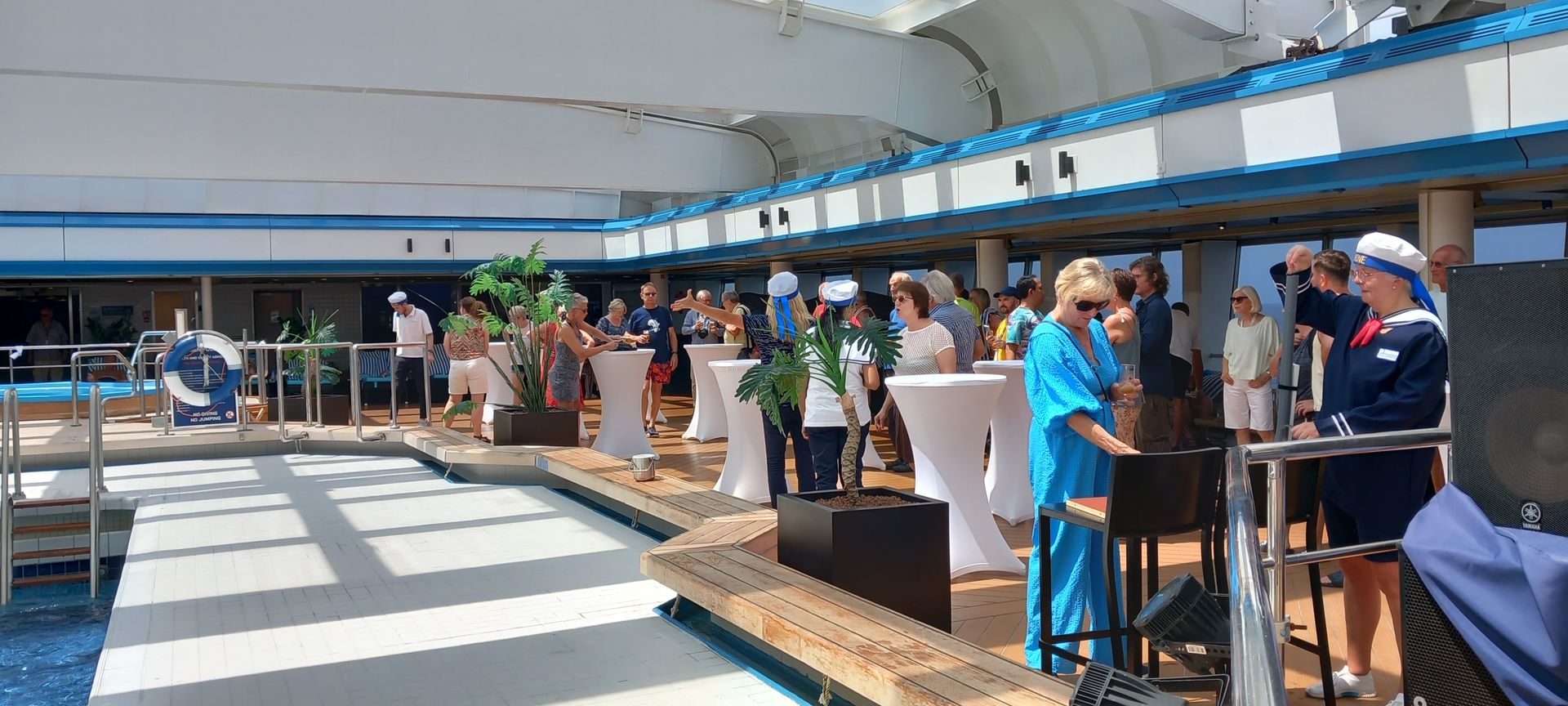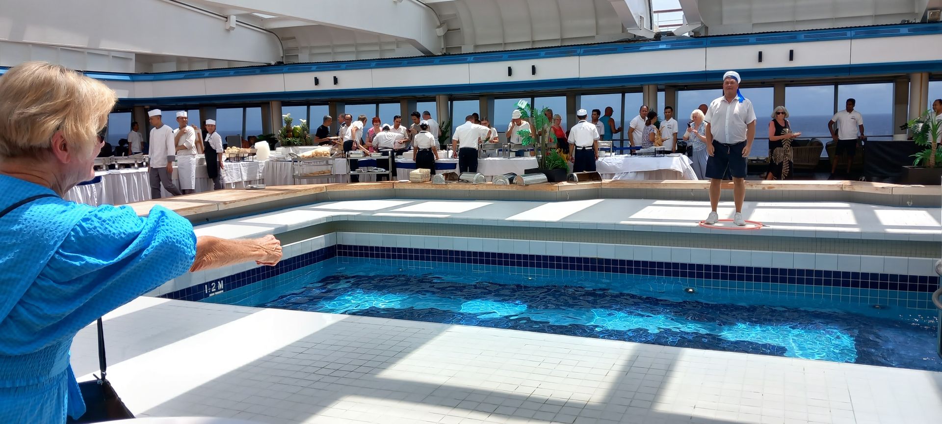 Gestern kam Neptun mit Anhang auf das Lido Deck, da wir den demnächst den Äquator überqueren werden. Eine kleine offizielle "Feier" um den Gott des Meeres gnädig zu stimmen und um die Erlaubnis den Äquator zu überqueren zu bitten.