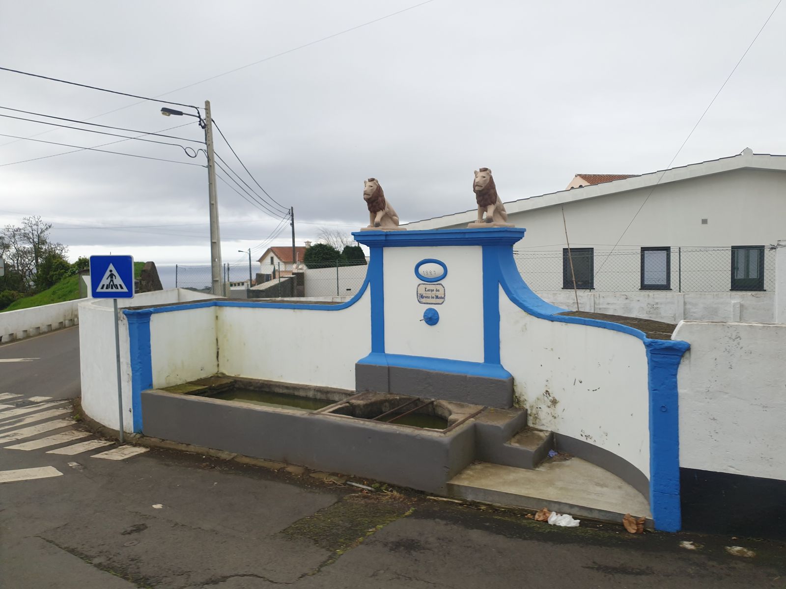 Das Bild der Insel ist geprägt von Hügeln und Senken, die vulkanischen Ursprung haben. Es gibt hier eine Bergkette, die Serra Santa Barbara heißt und reicht bis 1000 Meter hoch. An einer anderen Stelle gibt es eine Vulkansenke, die einen Durchmesser von 15 Kilometer hat. Ich schaue aus dem Busfenster und stelle fest, es hat ganz gut geregnet, denn an einigen Stellen steht auf den Wiesen das Wasser.
