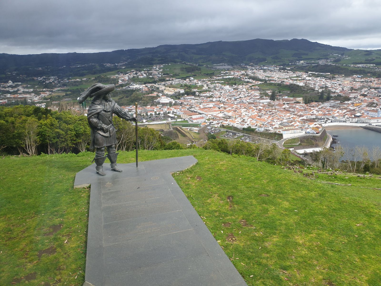 Wir streifen kurz den Ortsrand von Angra und fahren hoch zum Castel de Sao Joao Baptista, auch unter dem Namen Fortaleza do Monte Brasil bekannt. Die riesige Festungsanlage ist am Fuße des Berges. Im Jahr 1592 hatte man mit dem Bau begonnen. Es war auch als Gefängnis berühmt geworden, weil König Alfonso VI. von Portugal fünf Jahre dort einsitzen musste. Der Grund, seine Frau hat ihn dazu getrieben 1667 abzudanken. Im angrenzenden Park gibt es eine Statue von ihm.