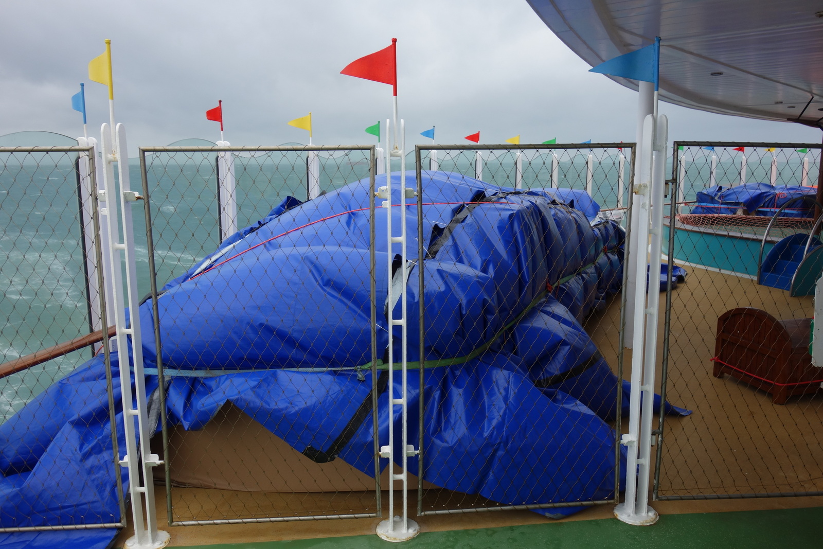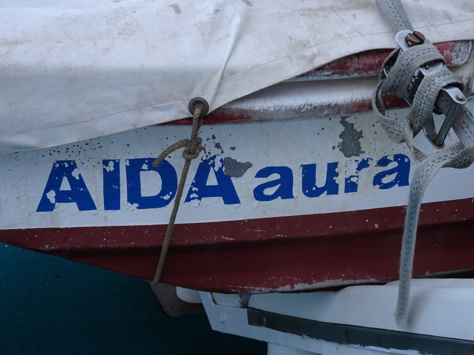 Okay, da wird Abbau betrieben. Wenn jetzt aber, und dieser Eindruck kommt durch einige wenige Postings im „Wasserurlaub-Forum“ bei Außenstehenden offenbar durchaus auf, man also meint, dass hier das öffentlich sichtbare Packen begonnen und einem hier die Planken schon unter dem A… weggezogen werden, der irrt. Jedenfalls sind wir während der Reise über keine Umzugskartons gestolpert. Einzig im Außenbereich, am Heck, befindet sich etwas unter Planen.