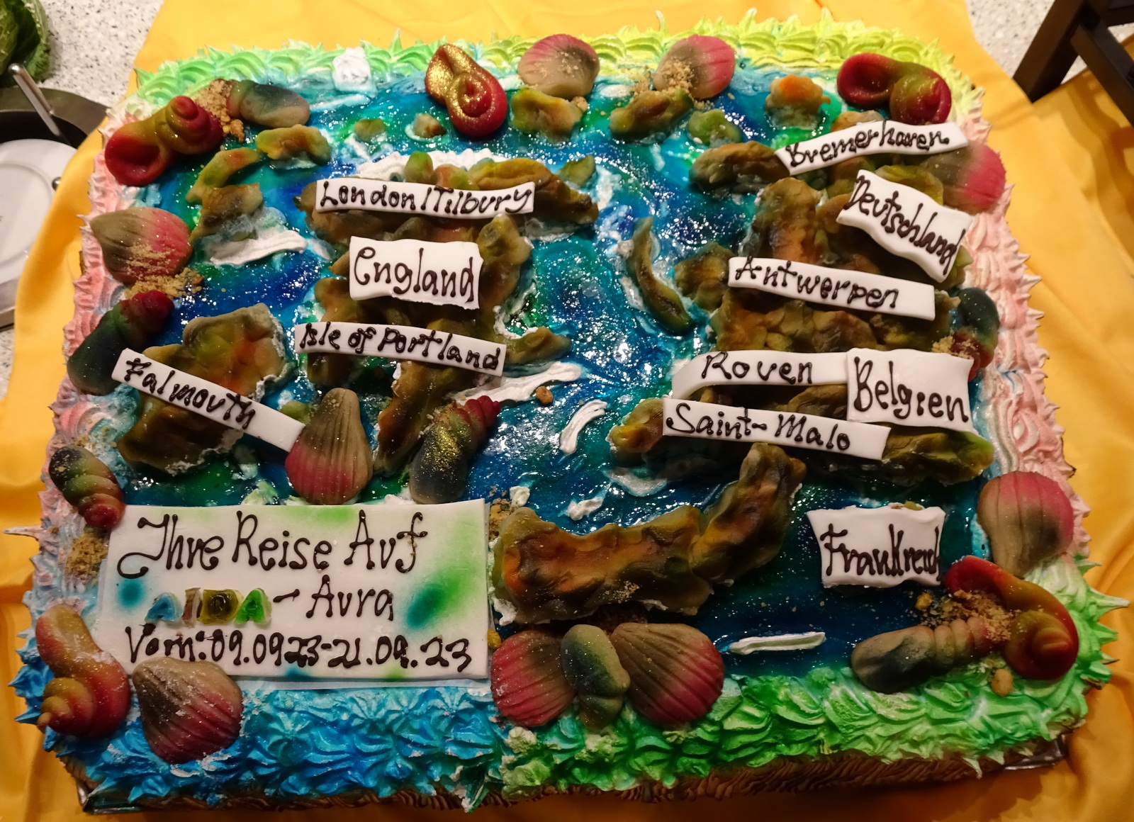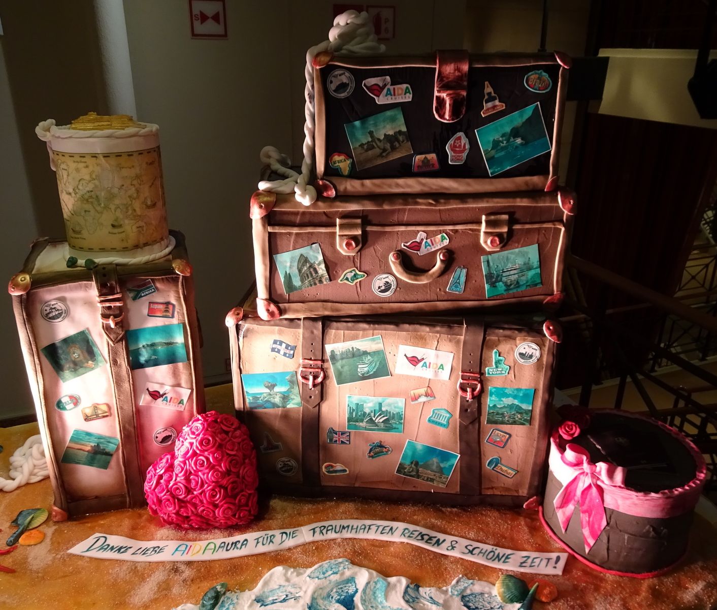 Einige wohl besonders attraktive Hafenplaketten, diese Geschenke von den Erstanläufen die im Laufe des „Aura-Leben“ zusammengekommen sind, wurden vor 3 Tagen versteigert, andere standen bereits vorher zum Verkauf. Der Erlös, es kam wohl so Einiges zusammen, kommt „Cruise & Help“ für den Bau von Schulen zu Gute.