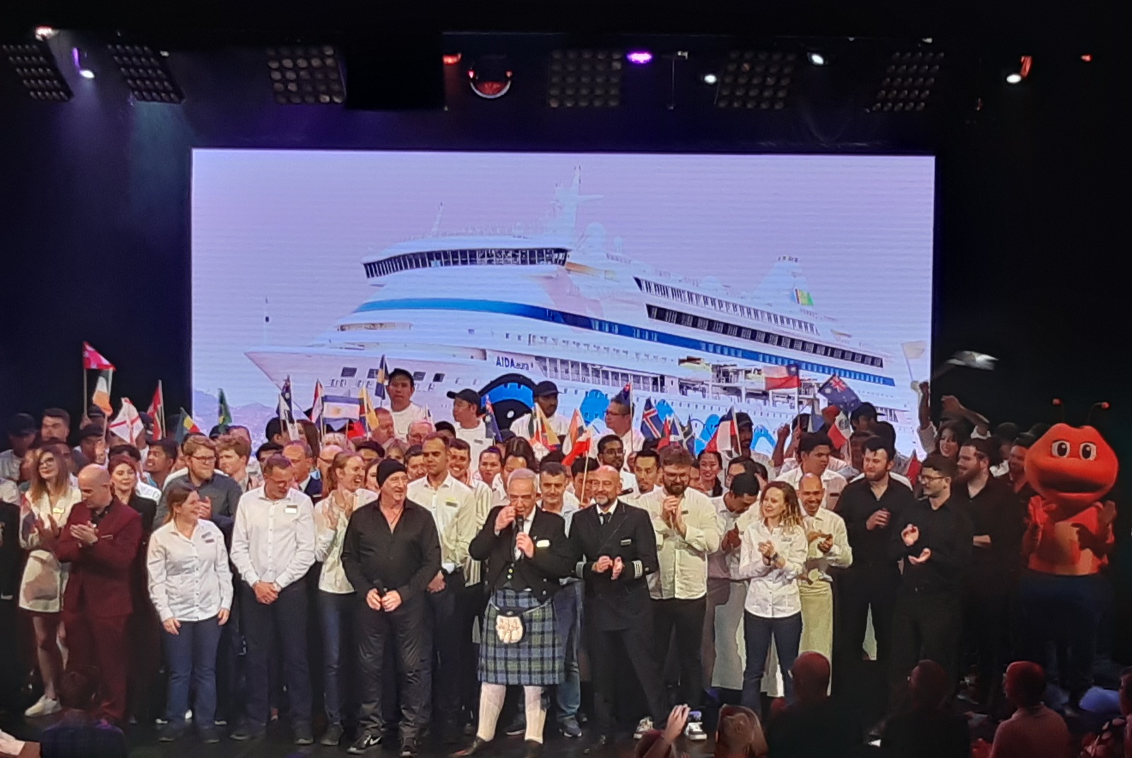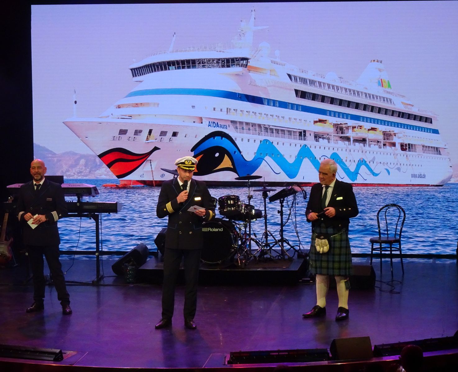 Dann eine Show der „Aida Stars“, echt tolle Einzelbeiträge der Sänger mit teils auffallend guten Stimmen, die beiden Gaststars und zum Ausklang dann noch eine „Highland-Weise“ des schottischen EM Lord Patrick.
