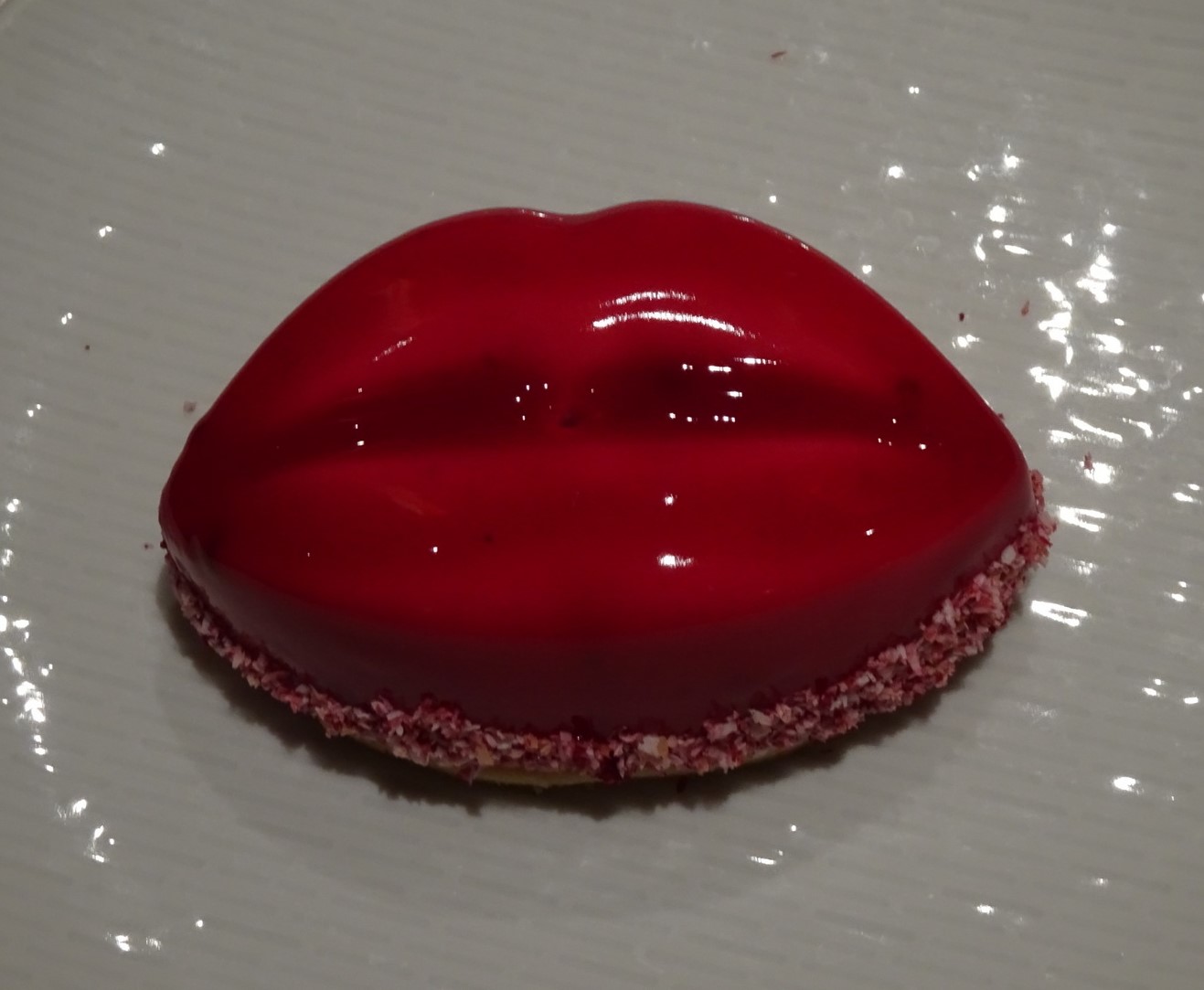 Ähnliche Kuchenstücke aber gibt es, wie zuletzt meist üblich, neben anderen Dingen, in essbarer Form am Dessertbuffet.