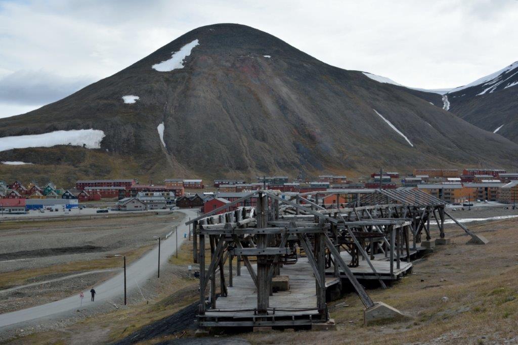 Direkt am Fjord Tank- und Industrieanlagen. Dahinter öffentliche Gebäude wie Universität, Krankenhaus und Inselverwaltung. Und bunte Häuser. Notwendige Farbtupfer an diesem doch insgesamt so trostlosen Fleck. Das Kohlekraftwerk. Ein Schandfleck? Vielleicht, aber notwendig für die Energieversorgung im wahrlich hohen Norden. An den Hängen Relikte der vorwiegend eingestellten Bergbautätigkeit. Mit Stahlseilen verbundene Holzstützen. An den Seilen hängend verrostete Loren zum seinerzeitigen Transport der Kohle zum Hafen. Aus ist es damit – unwirtschaftlich.
