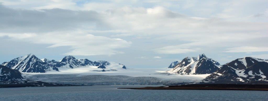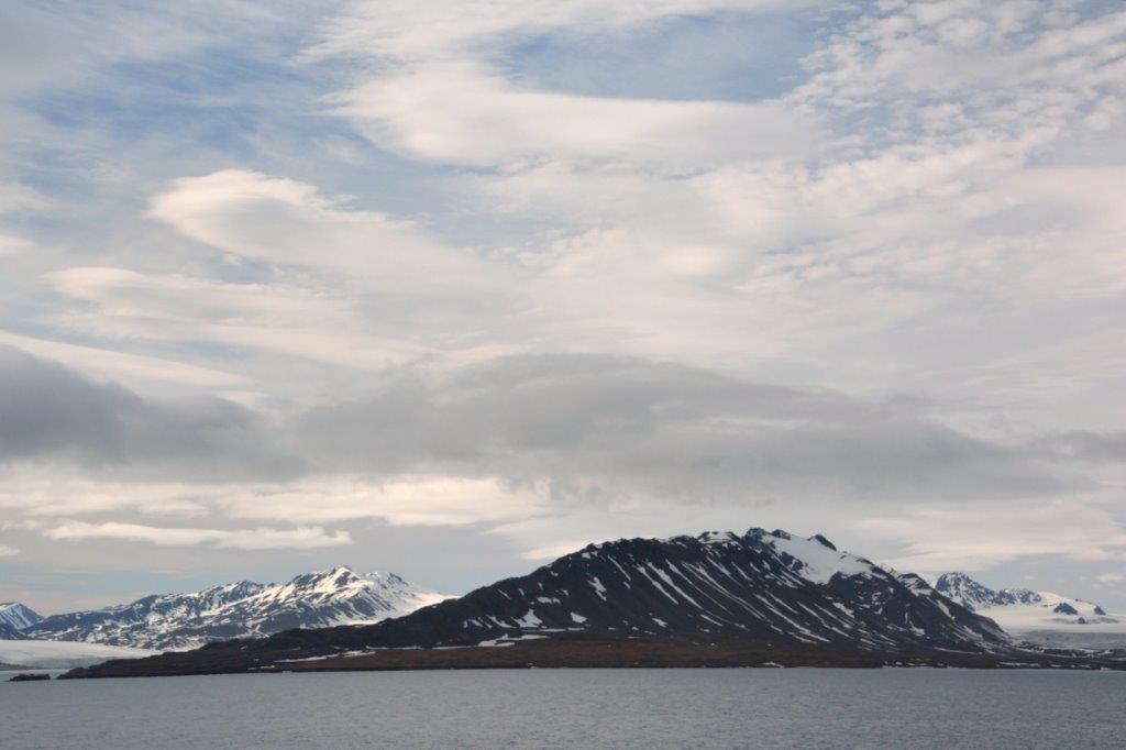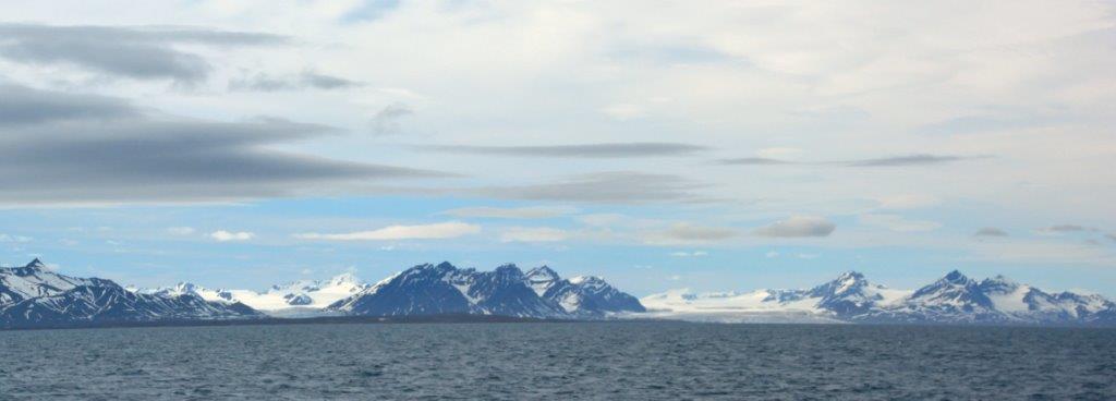 Urlaubszeit. Ausruhzeit. Ausschlafzeit. Aber nicht an Bord einer AIDA im Nordmeer. Also auch nicht für uns! Kurz nach 6 Uhr kamen wir nach dem notwendigen Morgenprocedere wieder ganz nach oben. Ein freier Platz vorne am Bug? Fehlanzeige! Ein freier Platz an der Backbordreling? Fehlanzeige! Warum nur? Ganz einfach! Wir befanden uns bereits im Isfjord. Spitzbergen. Das, was wir sahen, war phänomenal. Unter blauem Himmel eine lang gestreckte Gebirgskette. Nicht allzu hoch, aber wirkungsvoll.