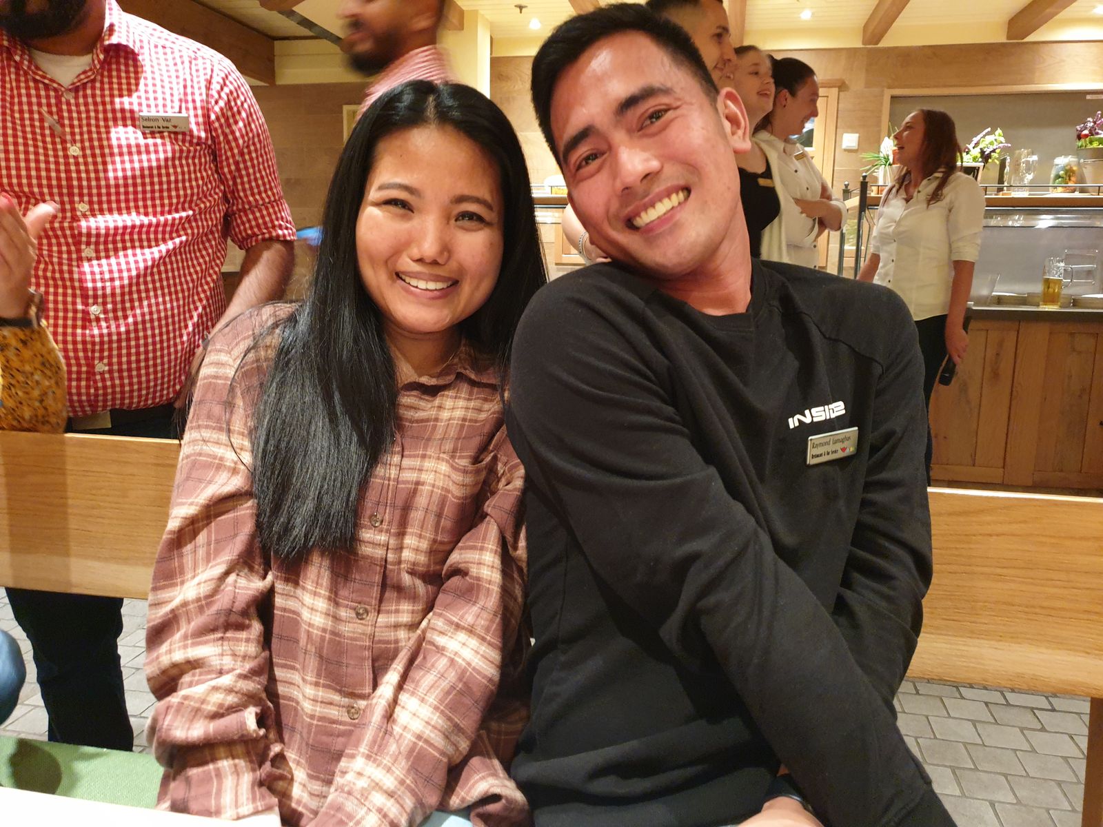 Und was liegt noch an? Wir schauen noch ins Brauhaus, Musik tönt uns entgegen – Karaoke. Uns gegenüber sitz ein Crewmitglied und seinem Lächeln kann man einfach nicht widerstehen. Die hübsche Frau neben ihm ist Liza, die Frau von - Michel.