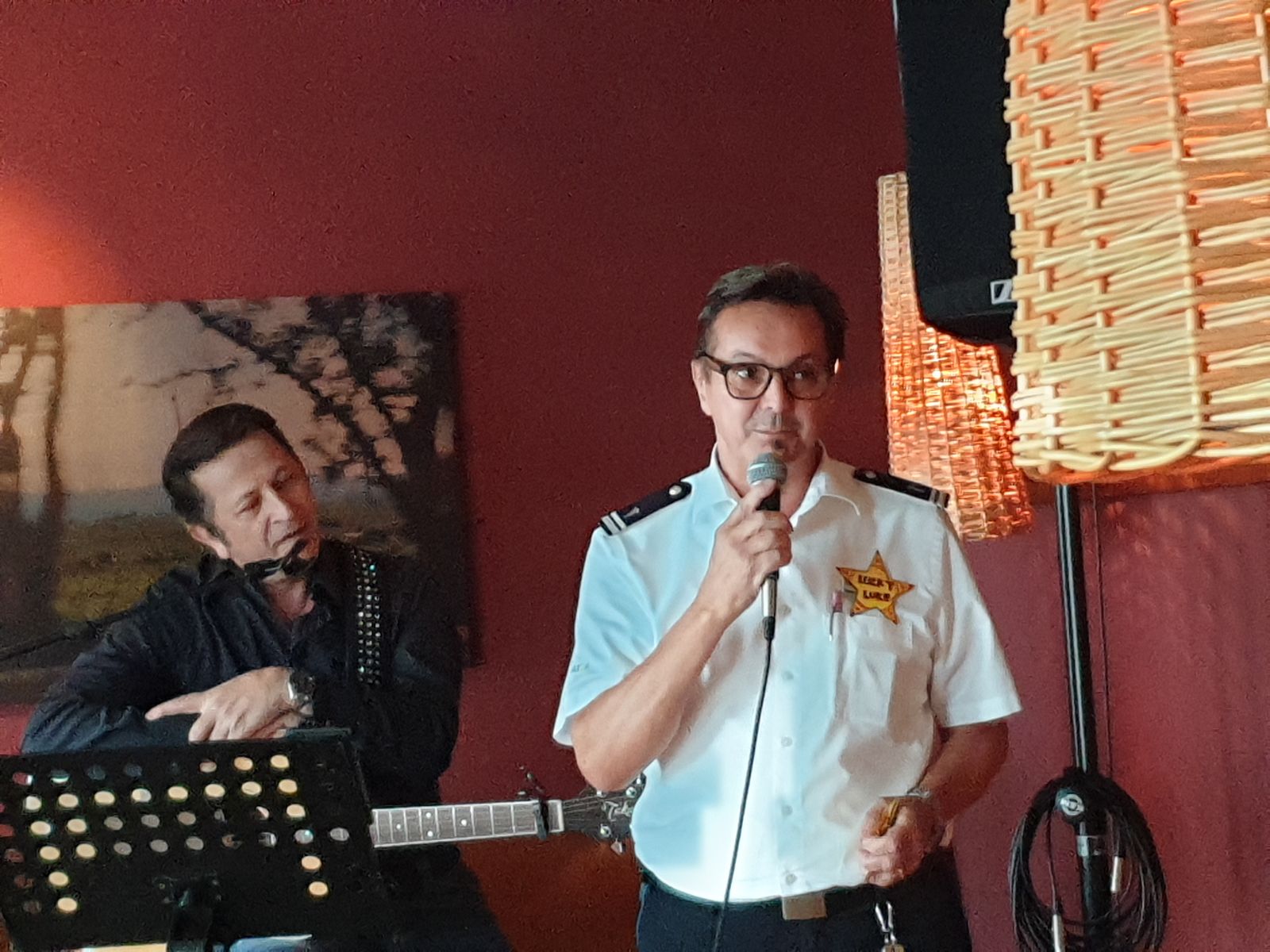 Eric Paisley heute ohne weißes Hemd und Fliege sitzt mit seiner Gitarre bereit, um uns mit seinen Country- und Westernsongs zu unterhalten. Michel, der Restaurant Manager, trägt ebenfalls zur Unterhaltung bei. Wir lauschen ihm zu, ist eine „ernste“ Sache und Eric ist ganz konzentriert. Die beiden verstehen sich, spielen ihr Spiel und hinterher lachen sie gemeinsam. Das gefällt mir.