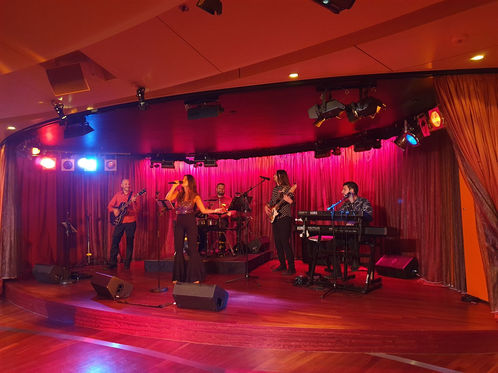 Anschließend geht es für uns noch in die AIDA Bar zum Discofox Abend. Nein, wir tanzen nicht, sitzen auf dem Barhocker und hören der Musik der Band ForTune zu.