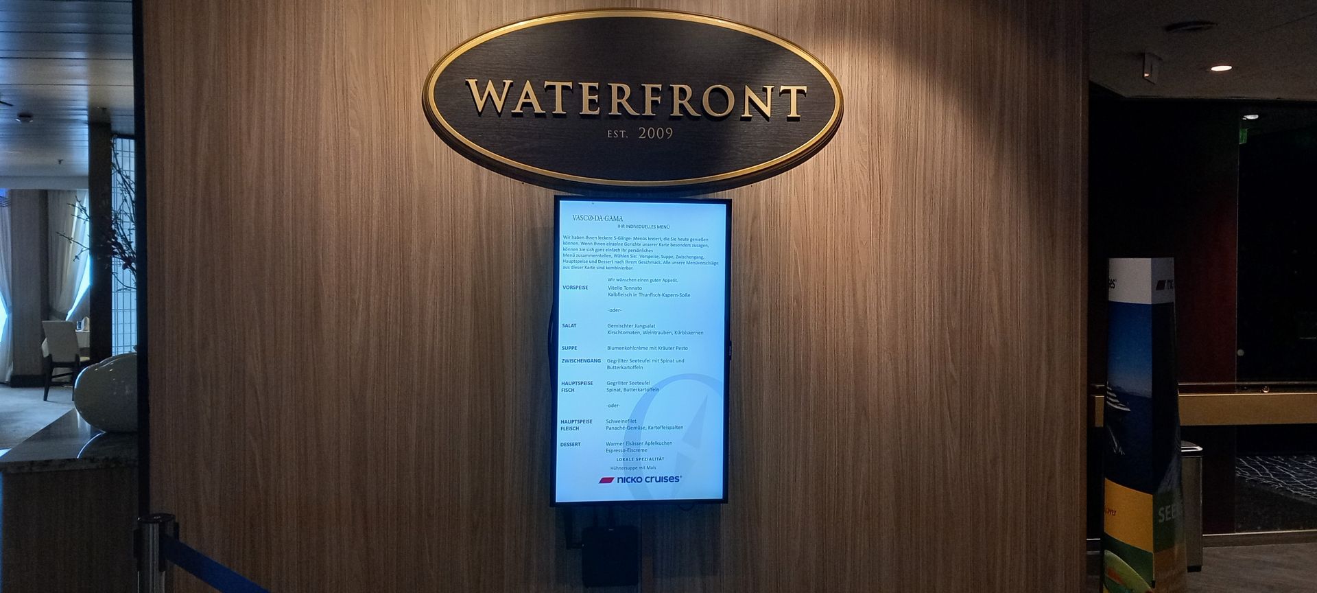 Uns persönlich gefällt das Waterfront und das Fusion sehr gut. Das Waterfront Mediterranean hat den Nachteil, dass es einen Holzfußboden gibt und auch die Wände aus hartem Material sind, dadurch ist es relativ laut, weil es nichts gibt was den Schall schluckt. Außerdem wird hier der Fisch (wir essen mit Leidenschaft Fisch) meisten nur gedämpft oder gedünstet. Diese Zubereitungsart sagt uns nicht zu.