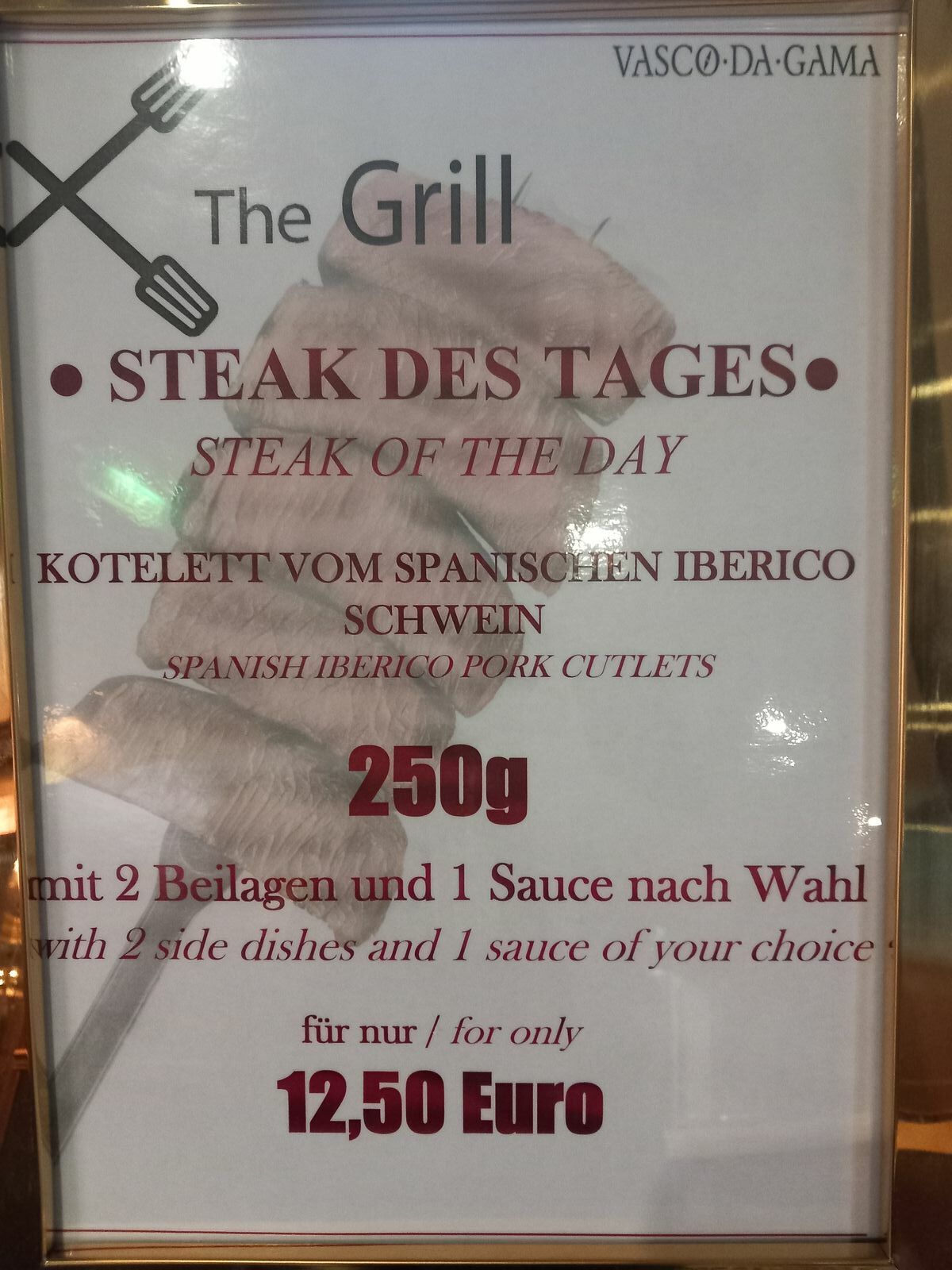 Zusätzlich gibt es noch ein Restaurant, das Grill, in dem man gegen Aufpreis noch essen gehen kann, das ist immer spärlich besetzt. Man versucht es mit fast täglich wechselnden Aktion zu beleben: