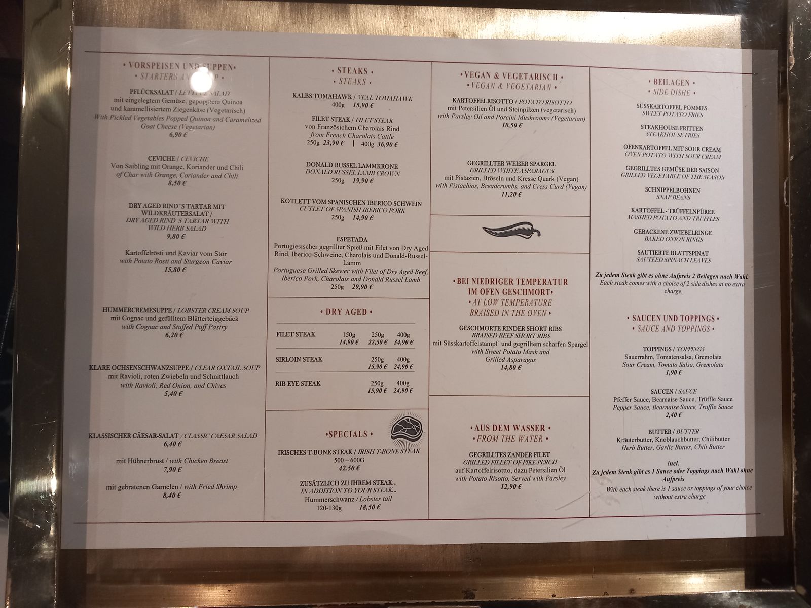 Extra gibt es noch den Chef table um 89,00€