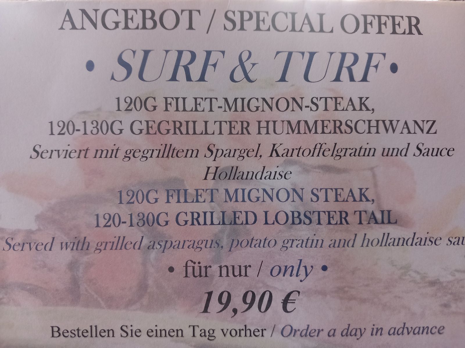 Gegen Aufpreis (25€) werden noch spezielle Themenmenüs angeboten: