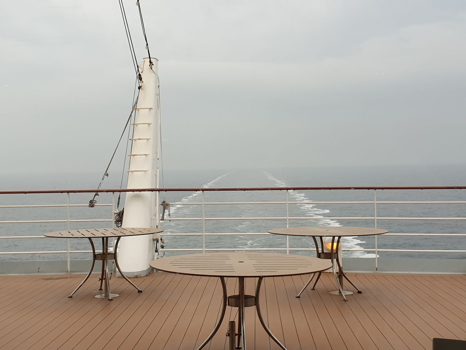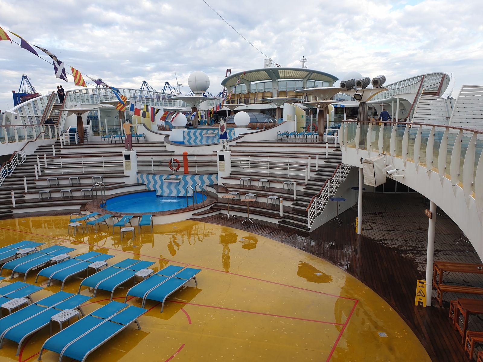 Ein letztes mal frühstücken, Blick letzter Blick noch auf das Pooldeck