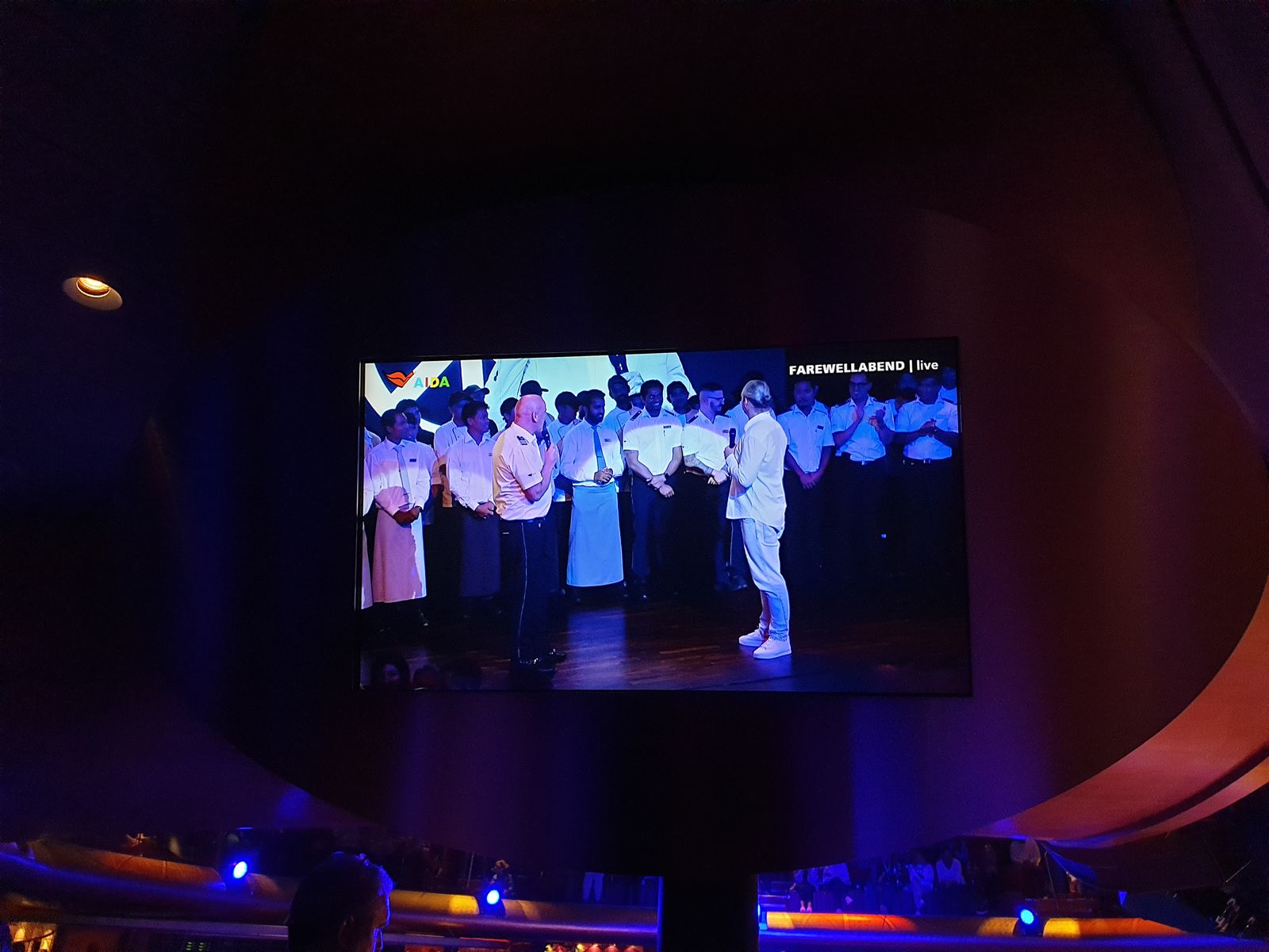 Um 21 Uhr gibt es den Farewellsekt, das Theatrium ist gut voll und dann verabschiedet sich die Crew von uns.