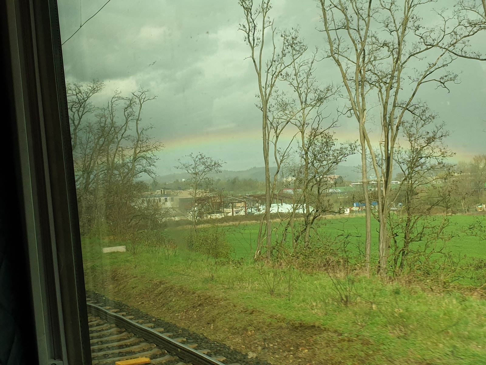 Der Zug ist fast pünktlich, wir treffen tatsächlich Michel im Zug. Ich schaue aus dem Fenster und wünsche mir ein wenig karibische Sonne!