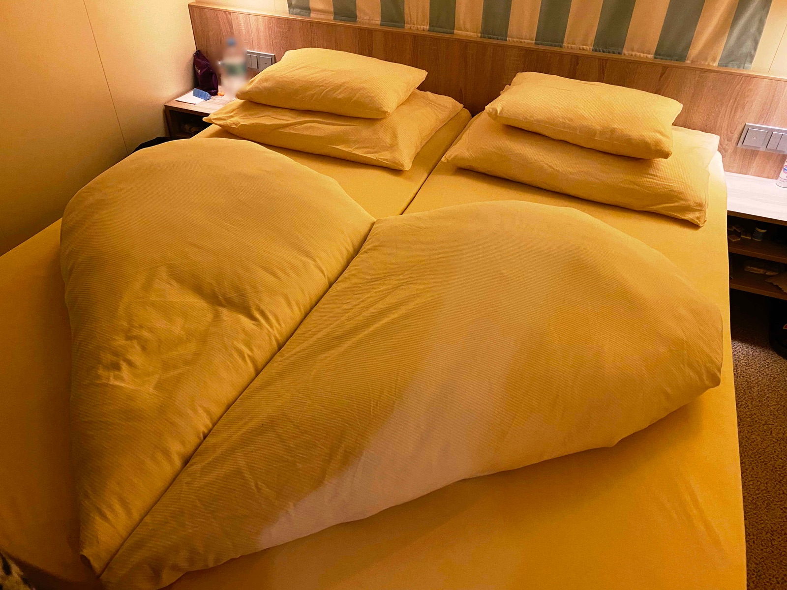 Ich nahm die Wasserflaschen, welche meine Frau immer neben das Bett stehen hat natürlich weg, da bei Vario kein gratis Kabinenwasser vorgesehen ist.