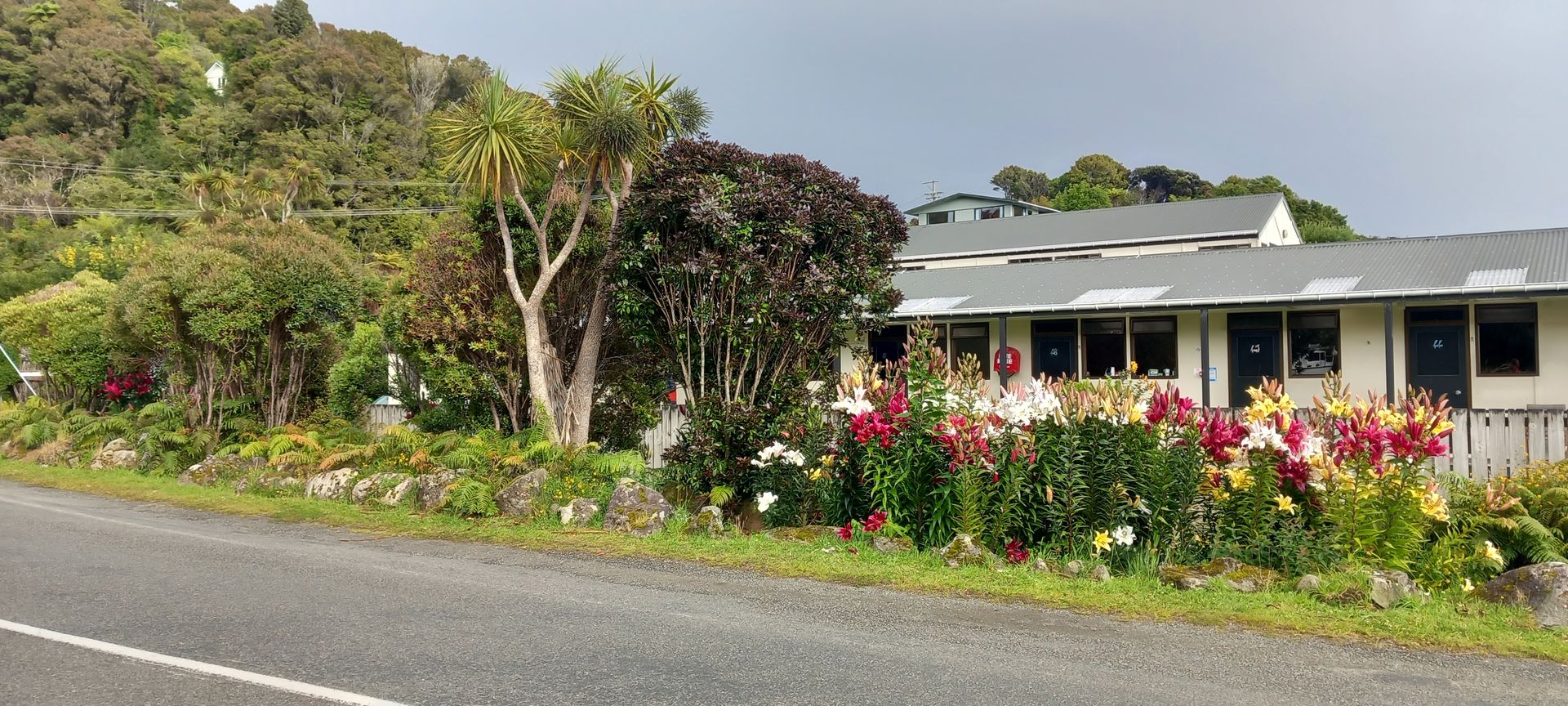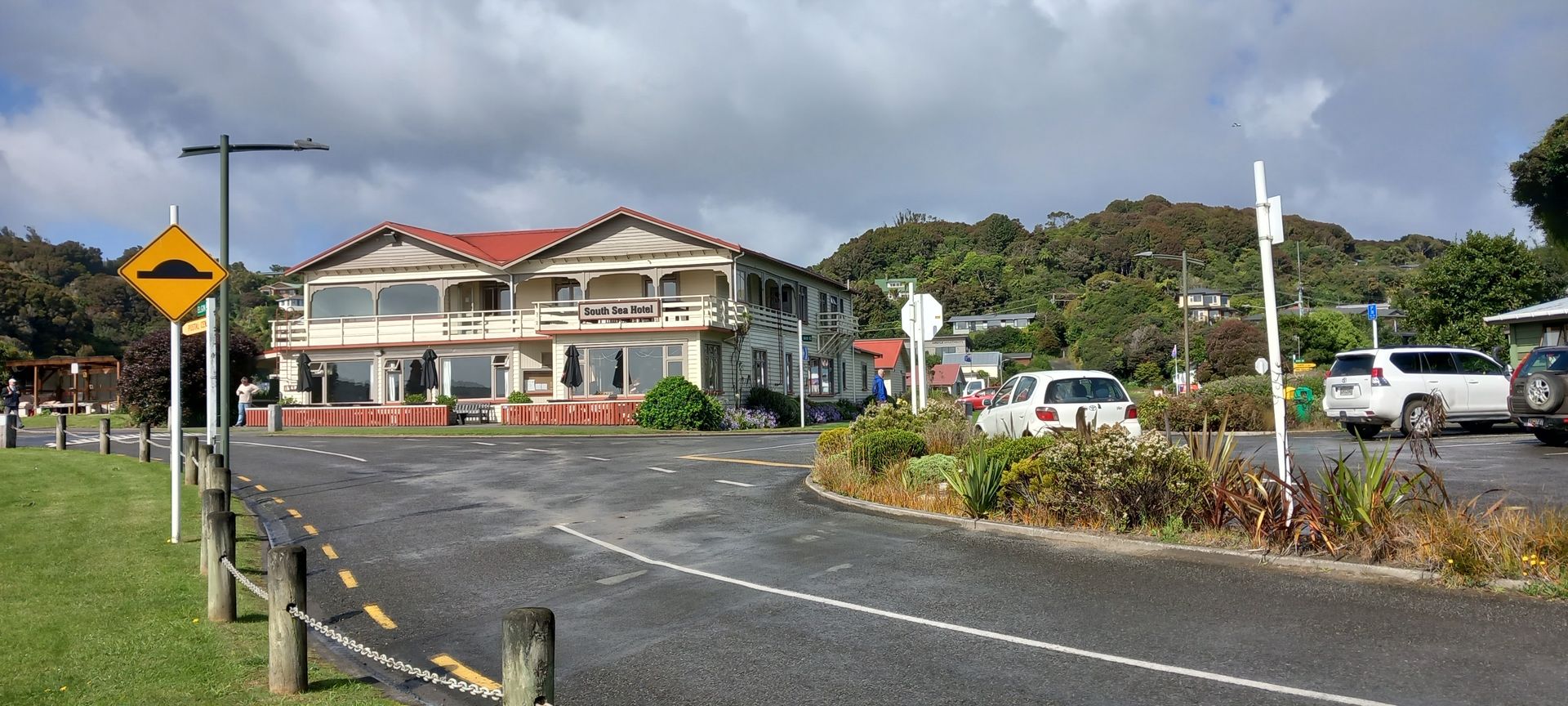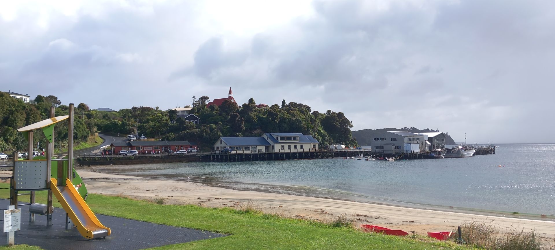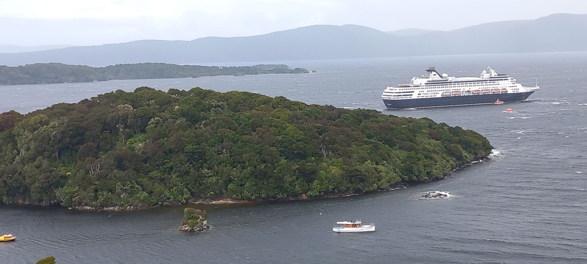 Morgens ankerten wir vor Oban. Außentemperatur 10° und windig. Eine kleine Ortschaft auf einer Insel im Süden von Neuseeland mit nur 400 Einwohnern, dafür gibt es viel Natur. Hier kommen viele Backpacker die Trails von 3-12 Tagen durch den Nationalpark machen. Es gibt nur 25km Straßenwege aber 100km Wanderwege. Wir fahren mit dem Tenderboot an Land, und sehen bei einem ca. 500m weiten Fußweg bis zum Ortskern, eine wunderschöne, sehr üppige, Vegetation. Es wird auch ein Shuttlebus um 4€/Strecke angeboten, da ein Teil des Weges sehr steil ist. Wir haben eine Busfahrt (30€/P) gebucht und wir fahren mit einem Kleinbus praktisch alle Straßen ab, bleiben bei einigen Hotspots für ein Foto einige Minuten stehen und der Fahrer erzählt uns einiges über die Insel, leider verstehe ich von dem Neuseeländischen Englisch nicht sehr viel. Fantastisch ist die Flora, fast wie ein Urwald. Nach ca. 1,5h war der Fahrer so nett und hat uns zum Tenderpier zurück gefahren. Das Wetter ist hier sehr unbeständig, innerhalb kürzester Zeit wechselt sich Sonnenschein mit einem kräftigen Regenguss ab. Wir hatten wieder einmal Glück, dass es nur regnete so lange wir im Bus saßen.