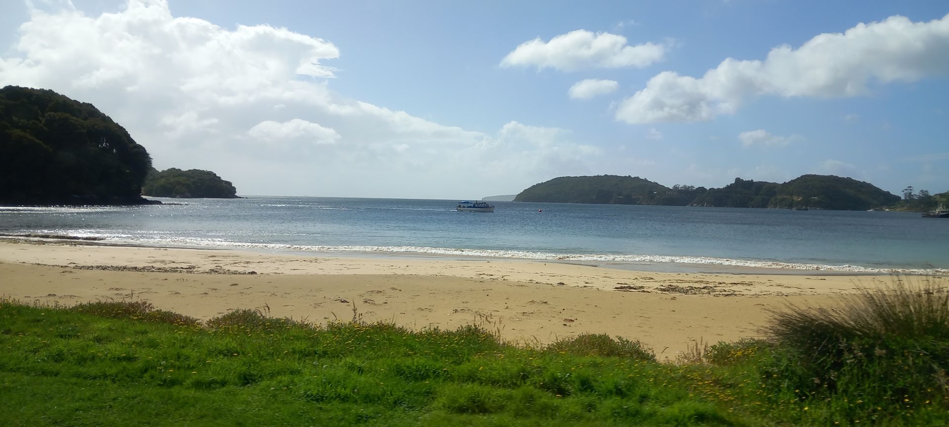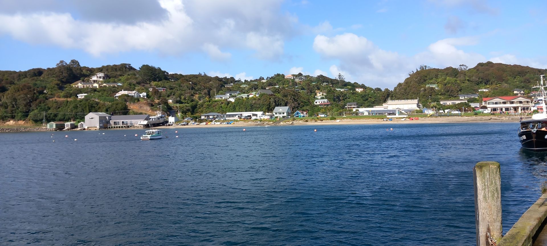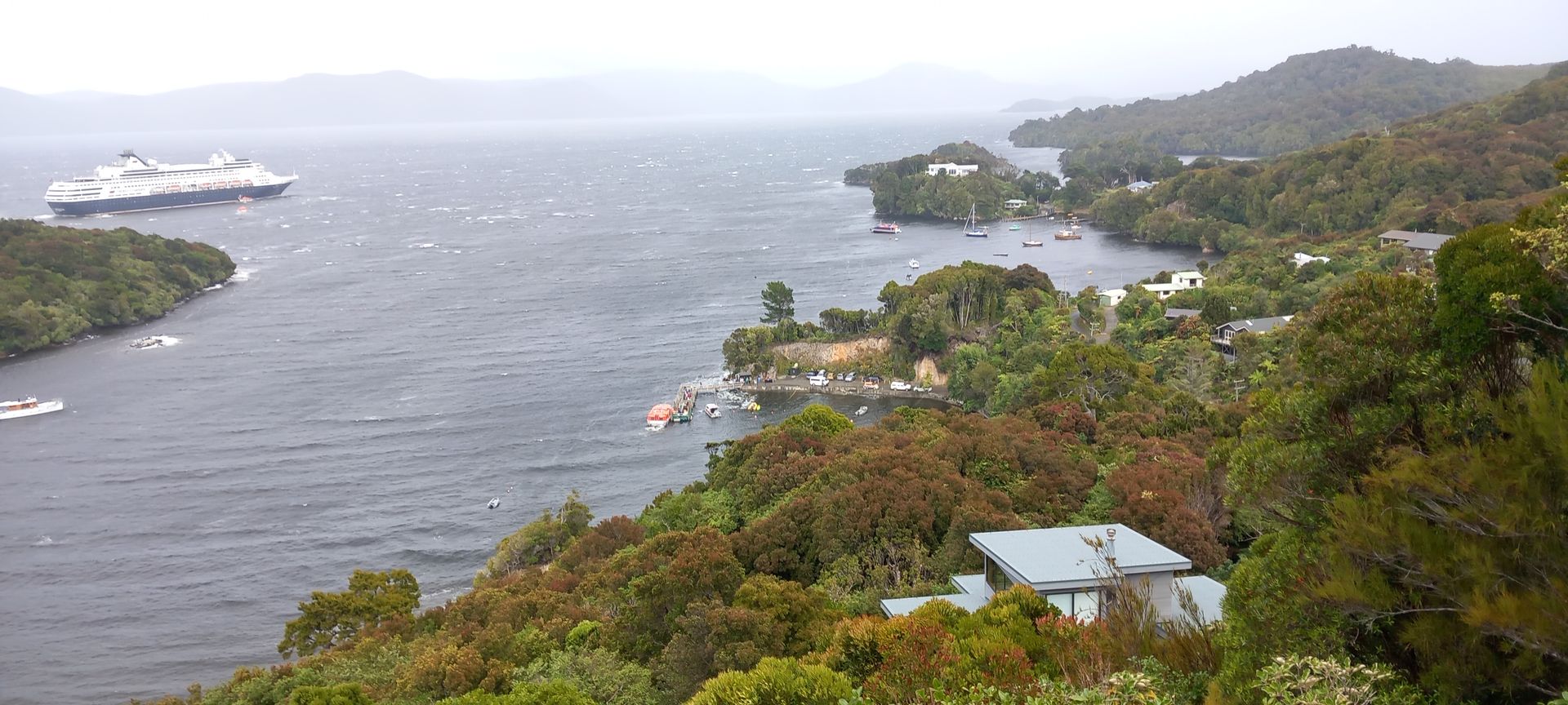Morgens ankerten wir vor Oban. Außentemperatur 10° und windig. Eine kleine Ortschaft auf einer Insel im Süden von Neuseeland mit nur 400 Einwohnern, dafür gibt es viel Natur. Hier kommen viele Backpacker die Trails von 3-12 Tagen durch den Nationalpark machen. Es gibt nur 25km Straßenwege aber 100km Wanderwege. Wir fahren mit dem Tenderboot an Land, und sehen bei einem ca. 500m weiten Fußweg bis zum Ortskern, eine wunderschöne, sehr üppige, Vegetation. Es wird auch ein Shuttlebus um 4€/Strecke angeboten, da ein Teil des Weges sehr steil ist. Wir haben eine Busfahrt (30€/P) gebucht und wir fahren mit einem Kleinbus praktisch alle Straßen ab, bleiben bei einigen Hotspots für ein Foto einige Minuten stehen und der Fahrer erzählt uns einiges über die Insel, leider verstehe ich von dem Neuseeländischen Englisch nicht sehr viel. Fantastisch ist die Flora, fast wie ein Urwald. Nach ca. 1,5h war der Fahrer so nett und hat uns zum Tenderpier zurück gefahren. Das Wetter ist hier sehr unbeständig, innerhalb kürzester Zeit wechselt sich Sonnenschein mit einem kräftigen Regenguss ab. Wir hatten wieder einmal Glück, dass es nur regnete so lange wir im Bus saßen.