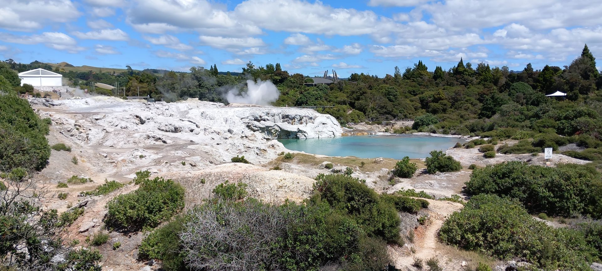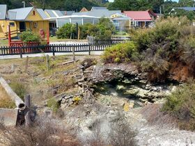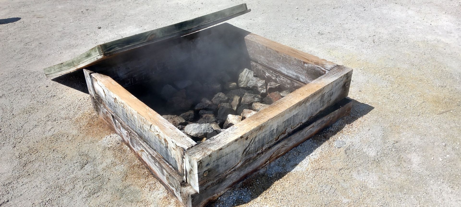Der Ofen der Maori in dem auch heute noch die Speisen zubereitet werden. Für die Dorfbewohner wird am Tag das Bad eingelassen, bis Abends ist das Wasser dann soweit abgekühlt, daß man gemütlich baden kann.