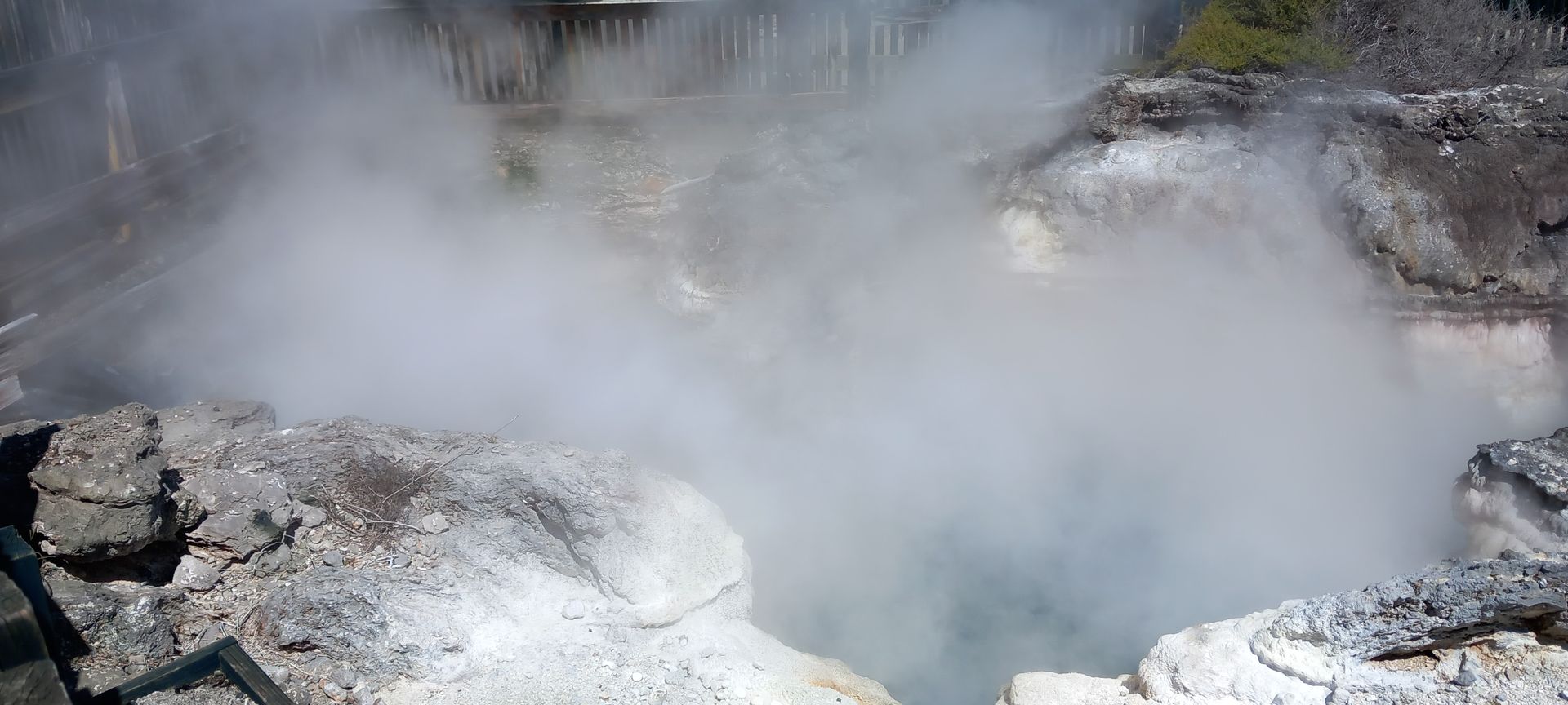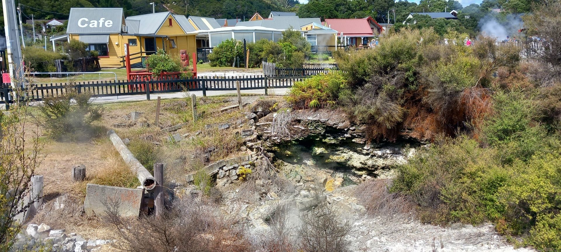 Der Ofen der Maori in dem auch heute noch die Speisen zubereitet werden. Für die Dorfbewohner wird am Tag das Bad eingelassen, bis Abends ist das Wasser dann soweit abgekühlt, daß man gemütlich baden kann.