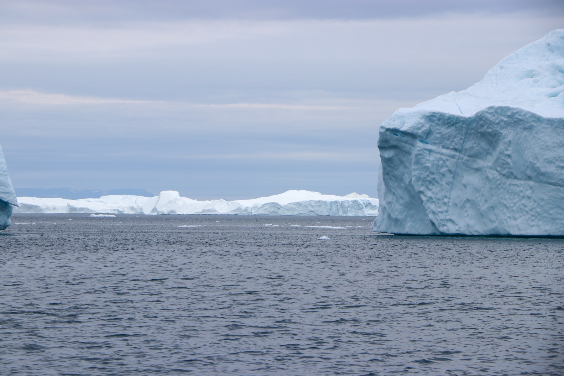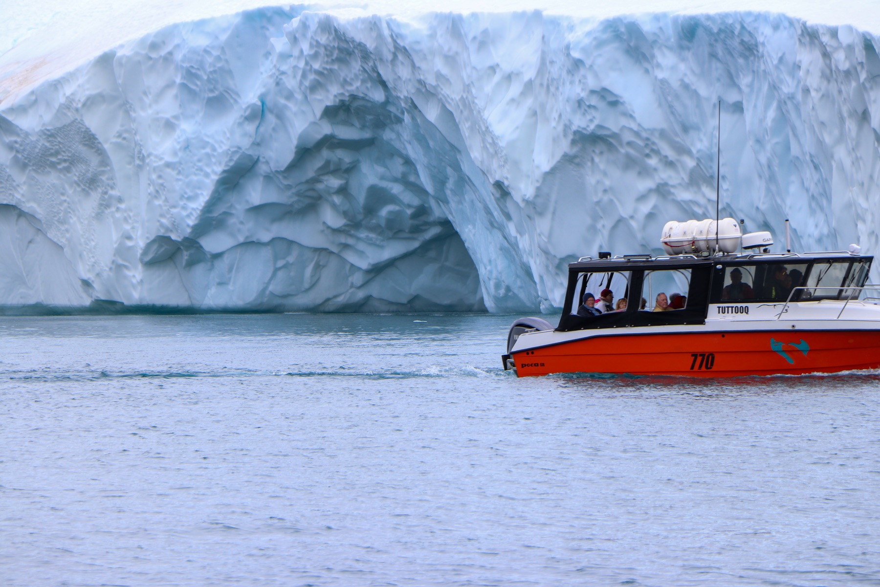 Es zeigte sich, dass die Tour mit dem kleineren Boot vielfältiger war. Wir kamen tatsächlich viel näher an den Gletscher heran und fuhren auch länger entlang des Jacobshavn-Gletscher. Das lag daran, dass die kleinen Boote schneller sind und somit weniger Zeit für die Anfahrt zum Gletscher brauchen. Aber kein Licht ohne Schatten: die schnelle Fahrt lässt das kleine Fahrzeug ziemlich auf den Wellen tanzen und das erzeugt harte Schläge auf die Wirbelsäule. Wer hier empfindlich ist, für den eignet sich doch eher das große Boot. Außerdem ist das Auf- und Absteigen bequemer.