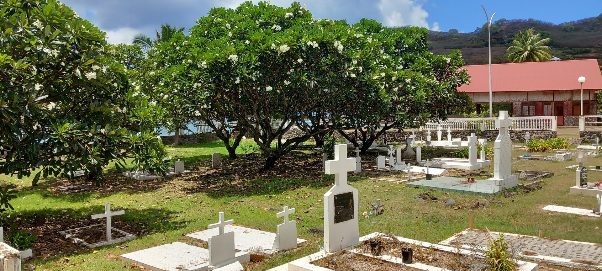 Unsere letzte Destiantion in der Südsee. Die Insel ist sehr Gebirgig mit einigen Fjorden. Da die Inseln im inneren alle sehr ähnlich sind machen wir heute nur einen gemütlichen Spaziergang durch den Ort. Nach 10min. Tendern legen wir am Pier an und werden von den Bewohnern wieder mit Musik und Tanz begrüßt. Auf einem kleinen Hügel steht eine große Statue die wir als erstes Besichtigen. Danach wandern wir am Pier entlang an dem noch einige der Statuen stehen und besuchen die örtliche Kirche, die einfach aber sehr schön ist. Das war es dann schon, nach 2 Stunden sind wir wieder zurück und bereiten uns jetzt seelisch auf 8 See Tage vor.