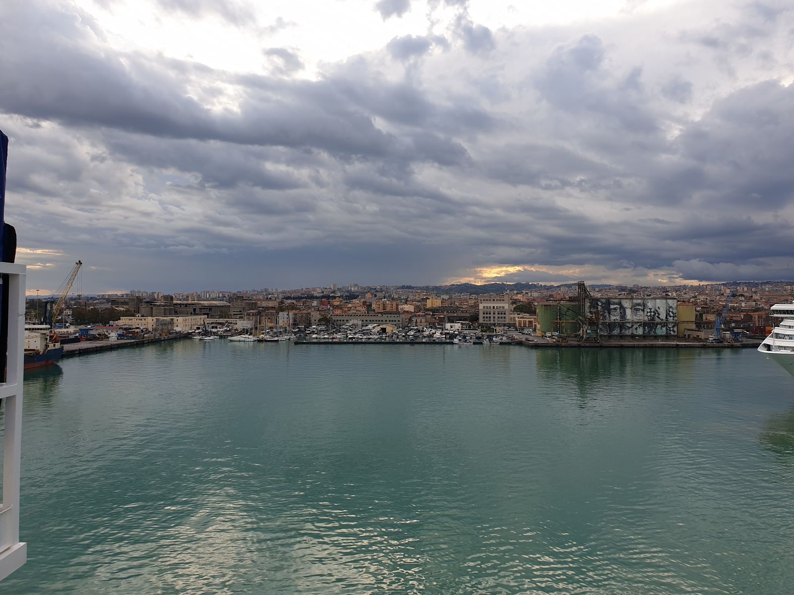 Das morgendliche Ritual ist schnell absolviert und nach dem Frühstück huschen wir auf das Pooldeck und schauen uns den Hafen von oben an und in der Ferne ist der höchste aktive Vulkan (3.300 Meter hoch) Europas zu erkennen. Ich habe mal gelesen, dass die Höhe sich immer wieder ändert und zwar nach einem Ausbruch. Es gibt öfters kleine Erdbeben, die Menschen auf der Insel haben gelernt damit zu leben. Sizilien ist übrigens die größte Insel des Mittelmeeres.