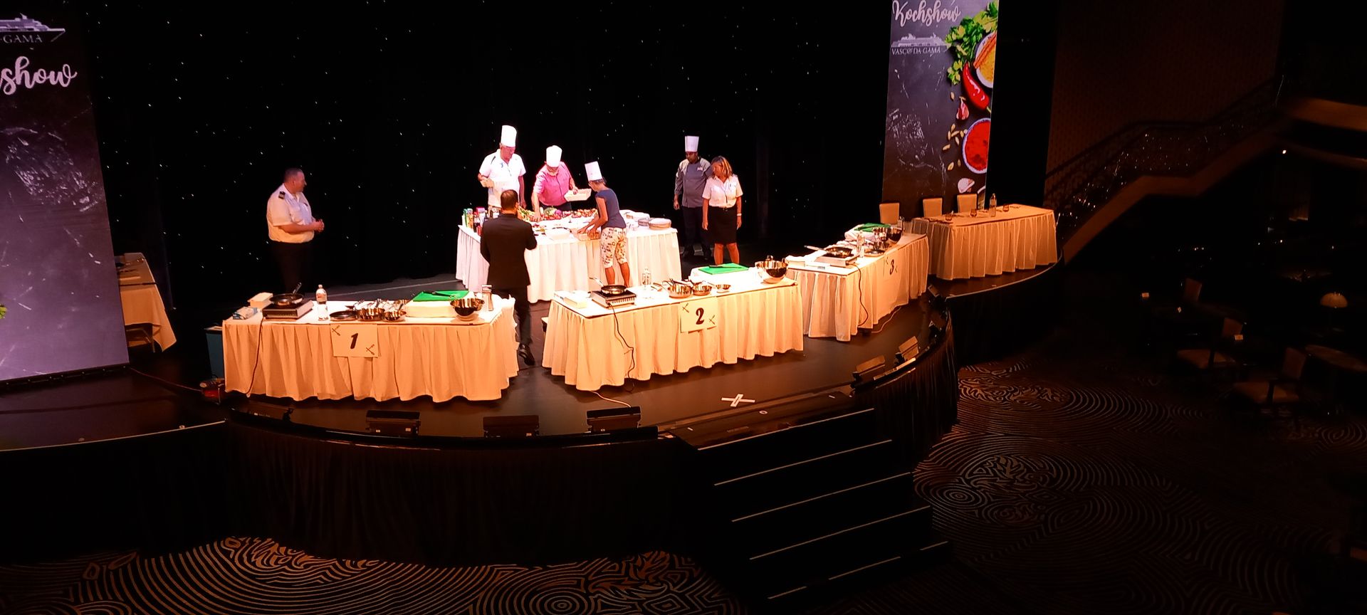 Es wird eine Küchenshow mit 3 Gästen veranstalten, ähnlich dem Küchenduell im Fernsehen. Aus angebotenen Lebensmittel müssen sich die Kandidaten welche auswählen und innerhalb 30 Minuten eine Speise zaubern. Danach werden die Gerichte von 3 Offizieren bewertet. Auch beim zusehen vergeht die Zeit etwas schneller als nur beim herumliegen.