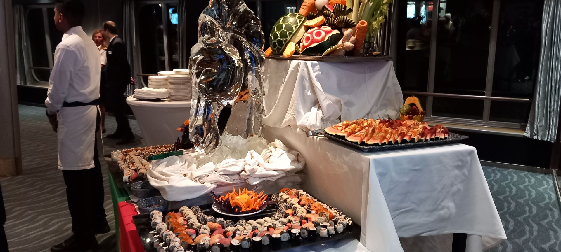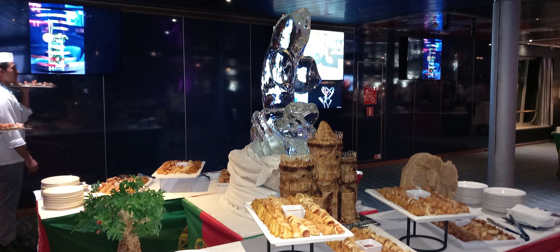Abends gibt es wieder einmal das internationale Buffet um 21uhr15 in der Sports Bar. Man merkt in den Restaurants dass sich viele Gäste den Appetit dafür aufheben, es sind sehr wenige beim Essen. Dementsprechend voll ist es dann Abends beim Buffet so dass man kaum zum Fotografieren rankommt.