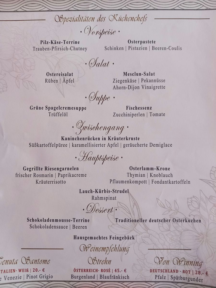 Abends gab es in allen Restaurants das selbe leckere Ostermenü.