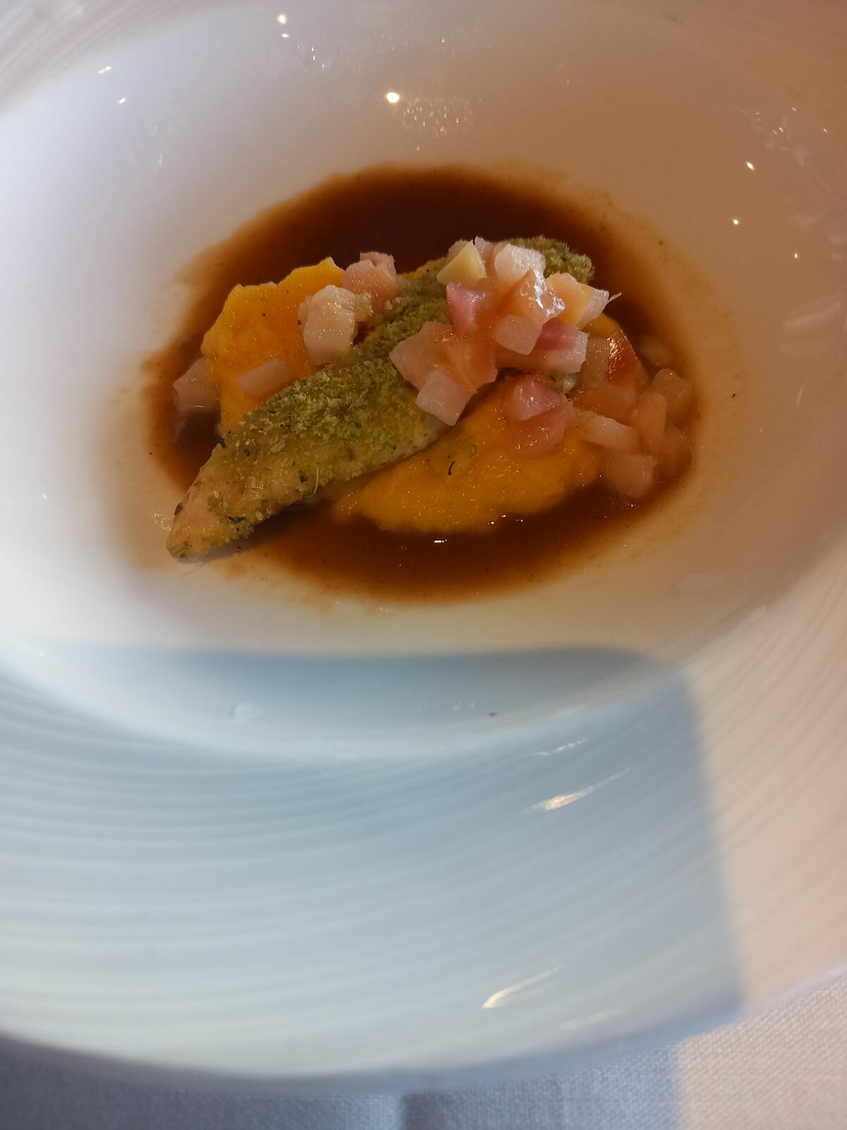 Im Waterfront Restaurant, dem größten auf der VdG sind jetzt wieder nur rund die Hälfte an Gäste, ist sehr angenehm und die Servier Zeit ist wieder bei einer Stunde. Da wir die Speisekarte schon rauf und runter durch haben essen wir, zumindest bei der Hauptspeise die Vegetarische. Diese sind durchaus eine gute Abwechslung.