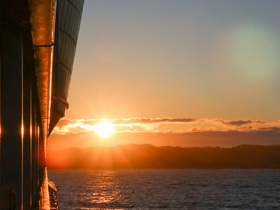 Zu Beginn des Auslaufens waren wir am Heck an der Ocean Bar. Es wurde aber zunehmend frisch, so dass wir in die Kabine gingen um weitere Fotos zu machen.
